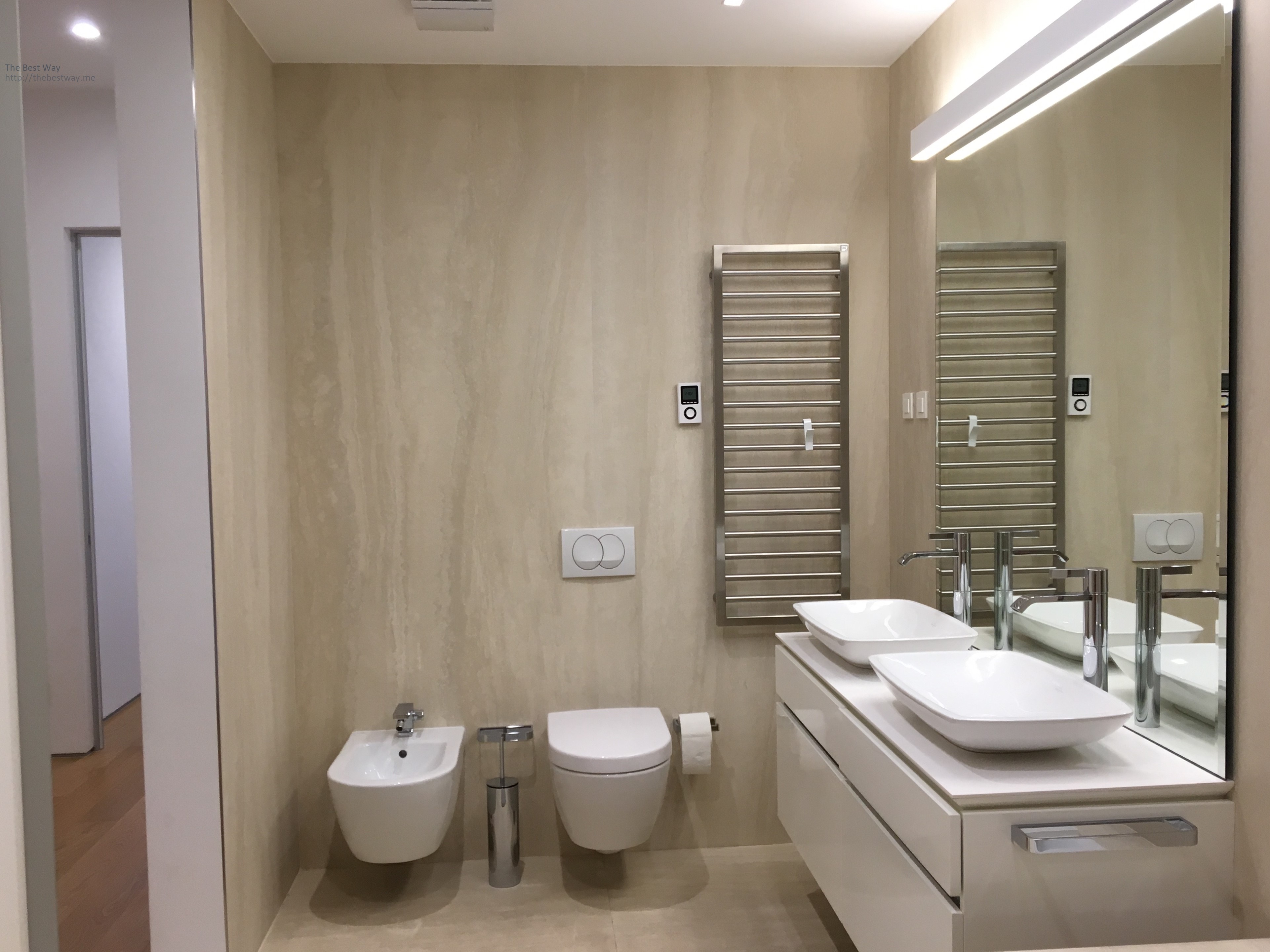 The apartments are located in the luxurious Dukley Gardens complex in Budva, close to the sea. Inside the complex there are private beaches, pools, restaurants. Next to it is the historical center of Budva. The apartment has two bedrooms, two bathrooms, a spacious living room. From the terrace there is a magnificent view of the city and the open sea.
