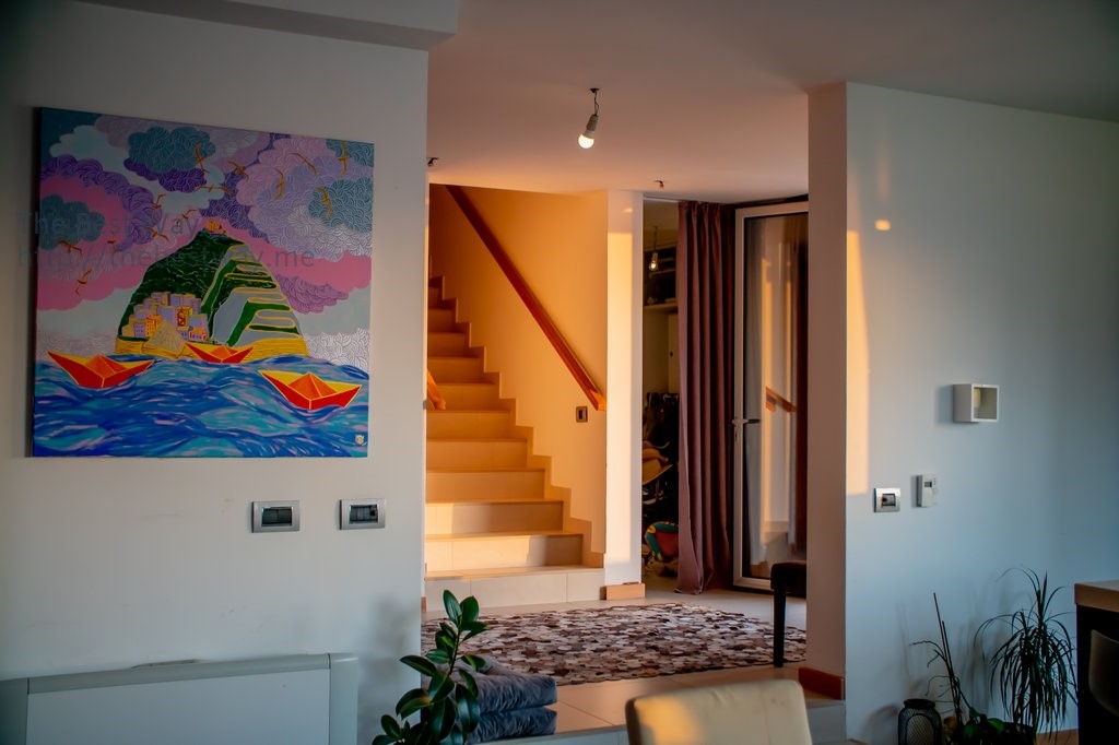 On the ground floor there is a spacious kitchen equipped with Siemens appliances, a wine cooler, furniture made of high quality natural wood materials, as well as a kitchen worktop and a natural stone island.