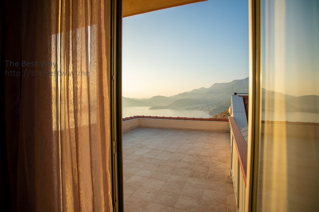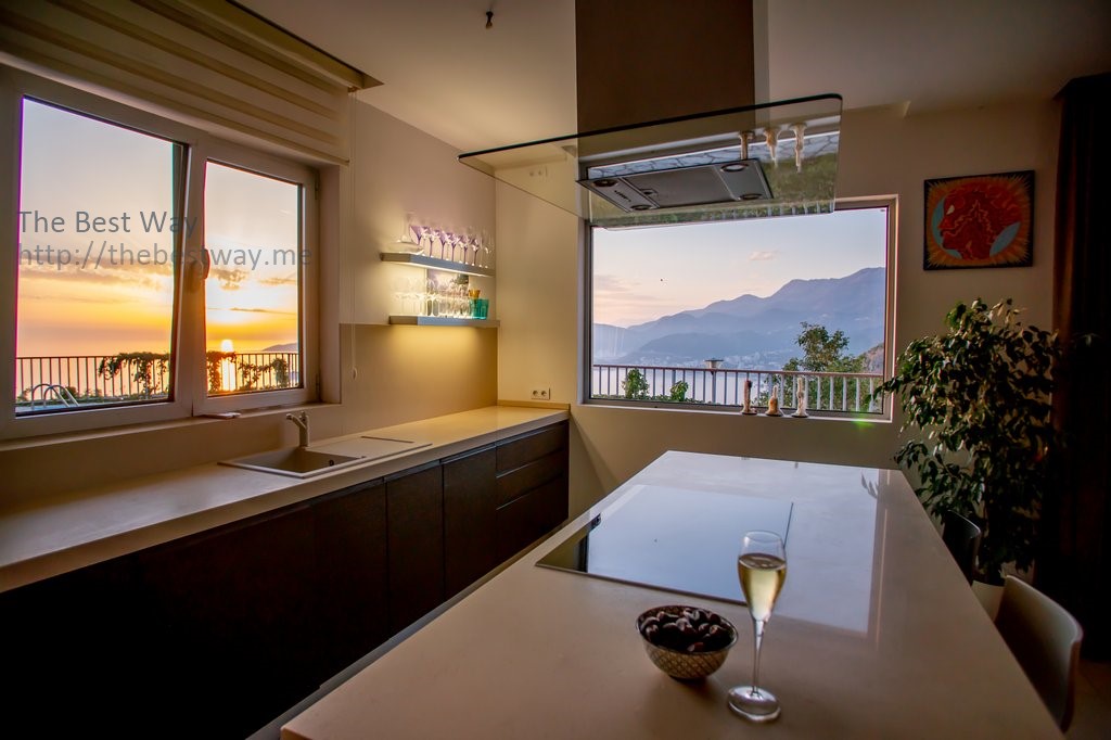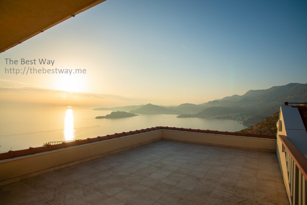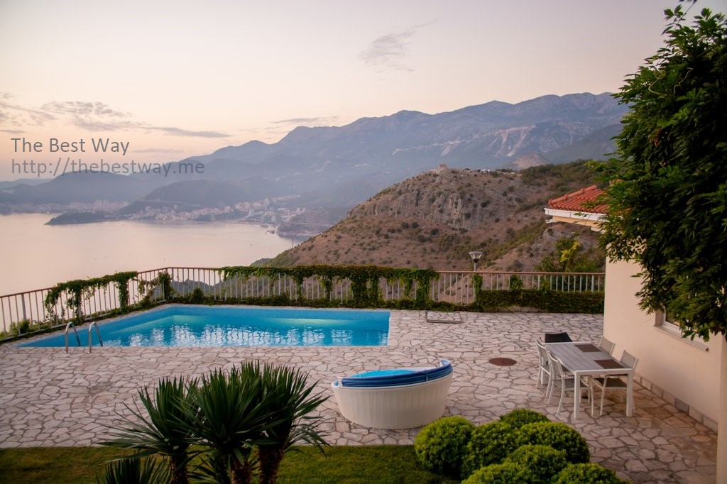 Участок 367 м2 включает декоративный сад в стиле Прованс на двух уровнях и бассейн, с видом на Адриатическое море и всю Будванскую Ривьеру.