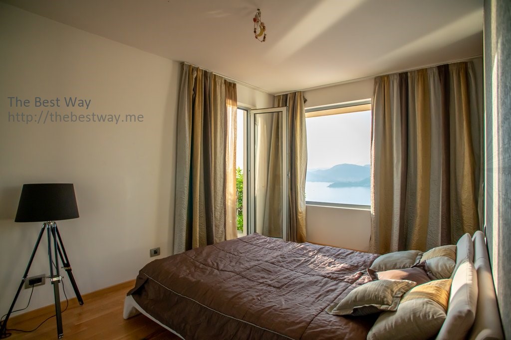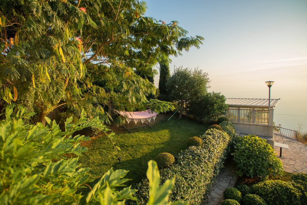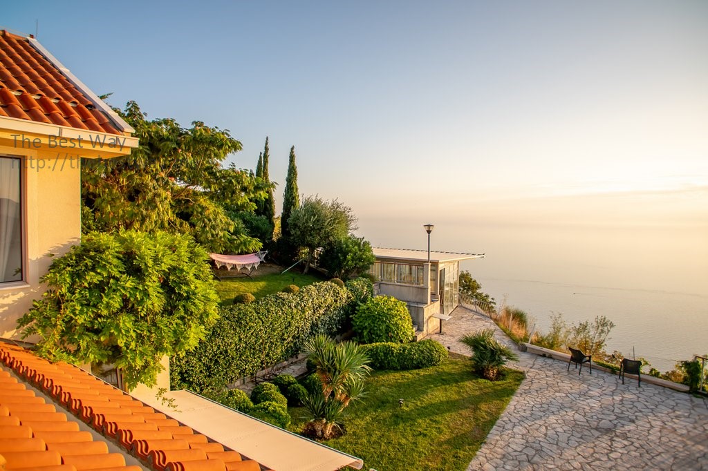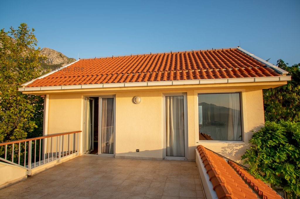 The plot of 367 m2 includes an ornamental Provence-style garden on two levels and a swimming pool overlooking the Adriatic Sea and the entire Budva Riviera.