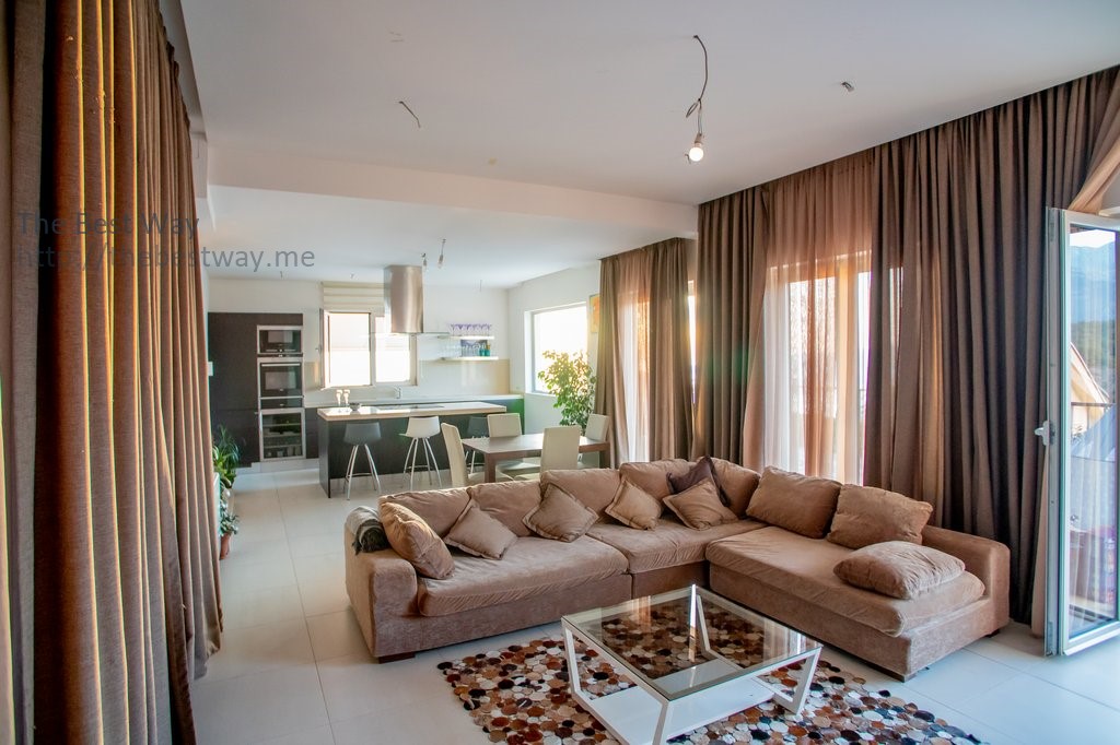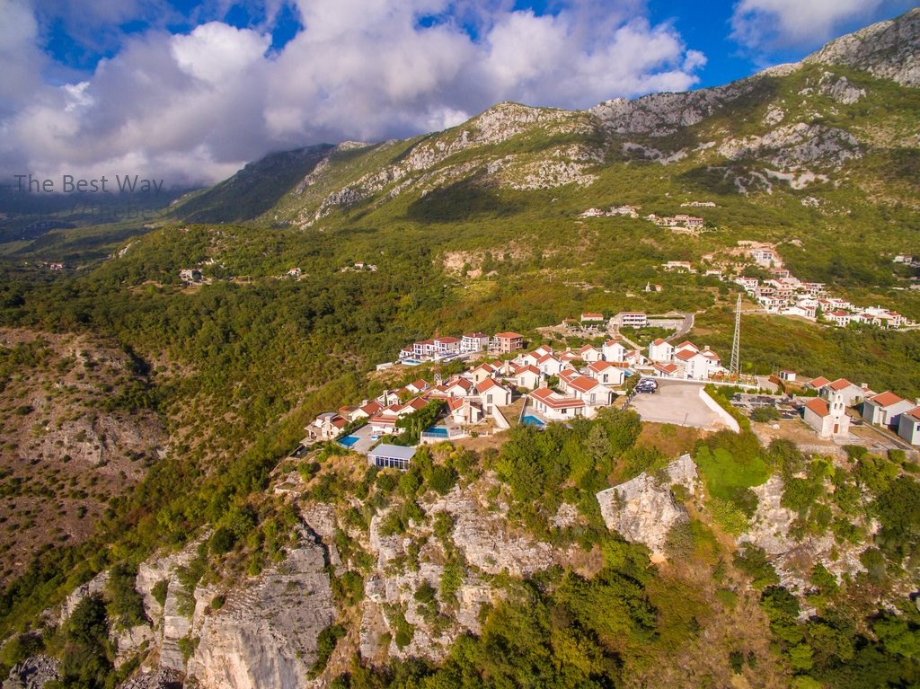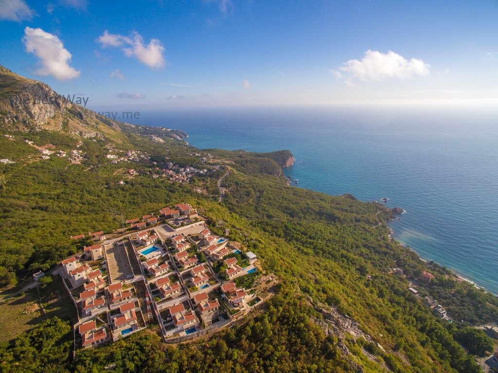 This beautiful detached villa is located in the exclusive residential complex "Karsko Selo", located on the edge of a mountain 250 meters above sea level, in the village of Tudorovichi near Sveti Stefan.
