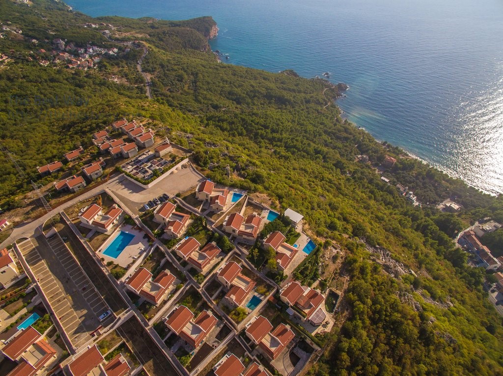 Ova prelepa samostojeća vila nalazi se u ekskluzivnom stambenom kompleksu "Karsko Selo", koji se nalazi na ivici planine 250 metara nadmorske visine, u selu Tudorovići kod Svetog Stefana.