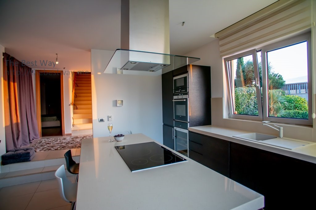 U prizemlju se nalazi prostrana kuhinja opremljena Siemens aparatima, hladnjakom za vino, namještajem od visokokvalitetnih prirodnih drvenih materijala, kao i kuhinjskom radnom pločom i ostrvom od prirodnog kamena.