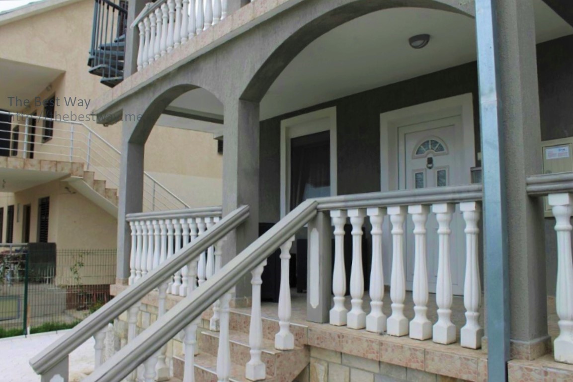Kuća se nalazi u mirnom dijelu, u blizini škole i trgovine. Udaljenost od mora je 1 km, a do centra grada 3 km. Sastoji se od tri etaže, od kojih je svaka zasebna stambena jedinica. Prvi i drugi sprat imaju isti raspored: predsoblje, 2 spavaće sobe, kuhinja, dnevni boravak i kupatilo. Potkrovlje sadrži 1 spavaću sobu, kuhinju, dnevni boravak, ostavu i kupatilo. Svaka etaža ima svoju terasu. Kuća se prodaje namještena i ima svoj parking.