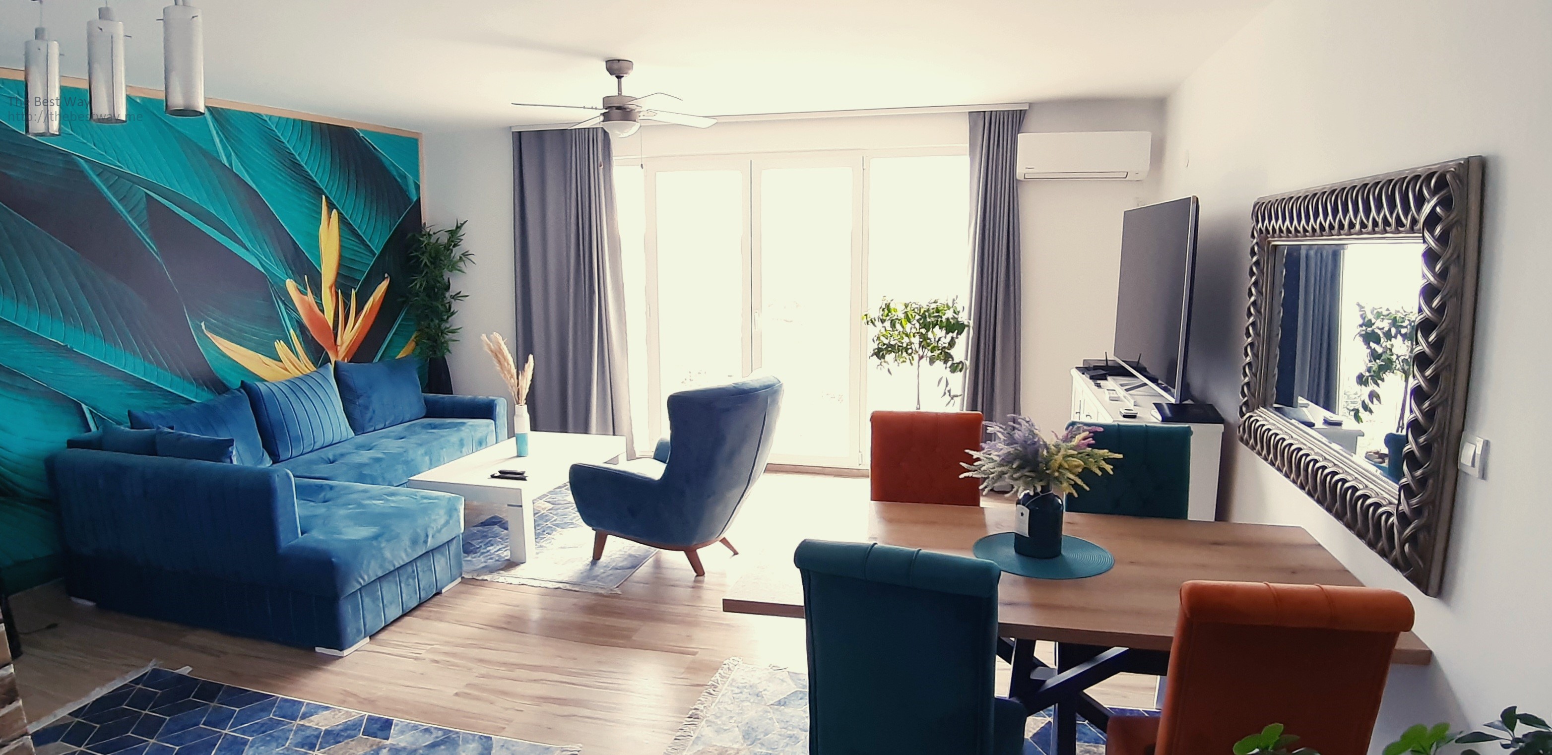 Площадь квартиры: 64 м2 Квартира ходиться на 3 этаже в 5 этажном здании Структура: 1 спальня, гостинная+кухня, большой коридор Вид из окна: На море Расстояние до пляжа: 300 метров (5 минут пешком) Рядом: Кафе, Бары, Рестораны В стоимость входит парковочное место Цена: 140 000