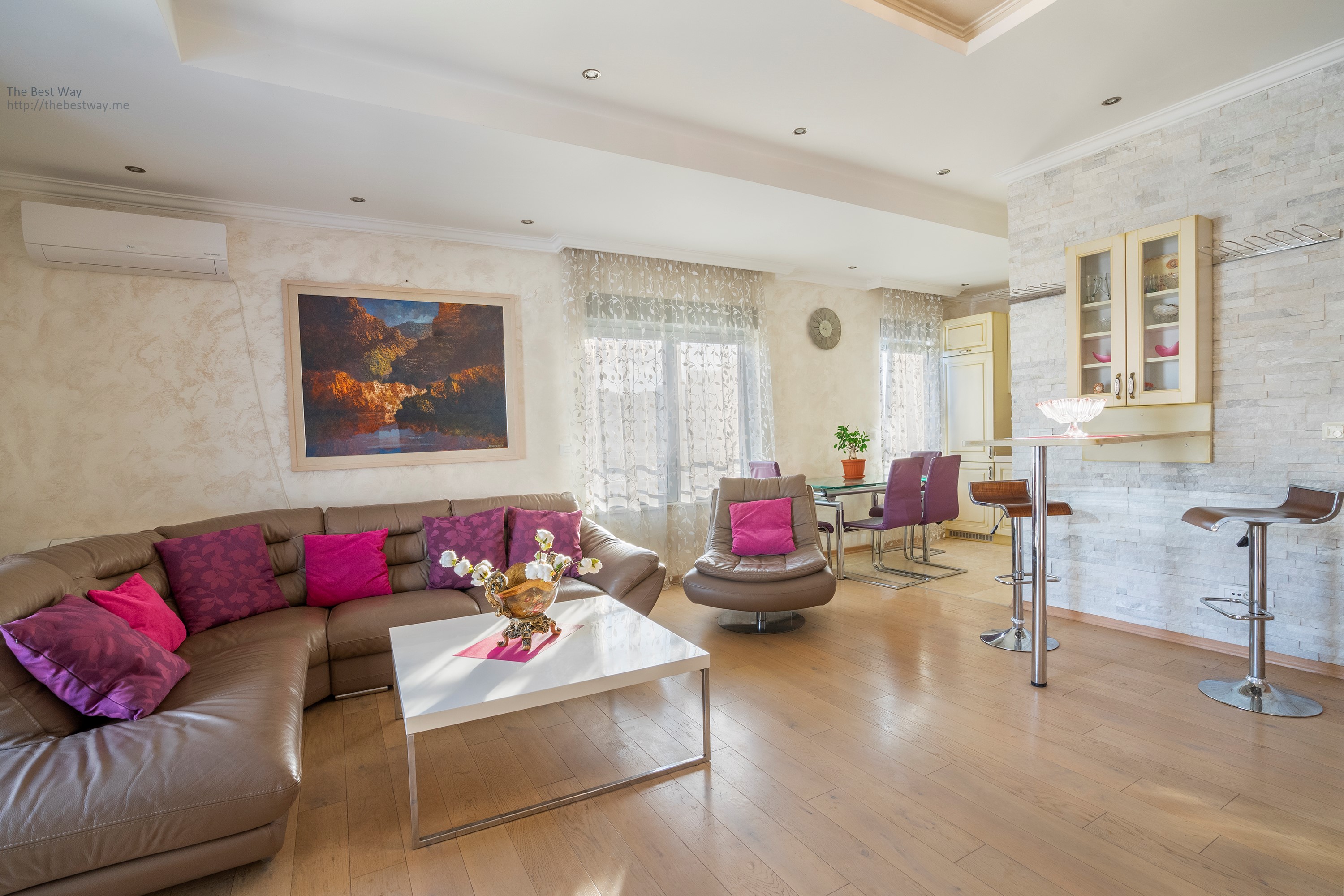 Novi prostrani luksuzni stan Površina: 79 m2 Distance to the sea: 400 meters Raspored: Dnevni boravak + Kuhinja, Spavaca soba, Kupatilo, Veliki balkon-terasa pogled na more Vlastita garaža Cijena: 220 000