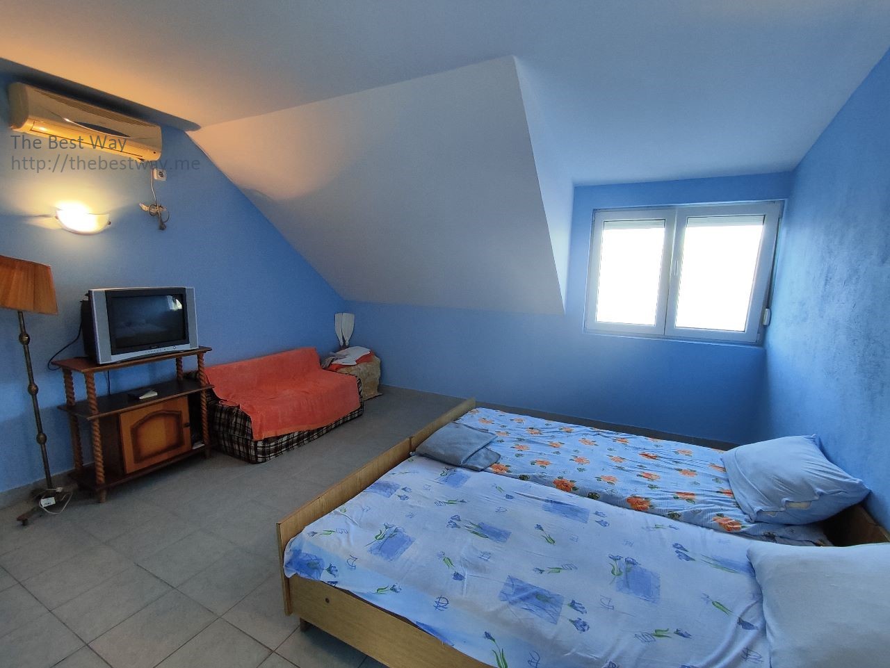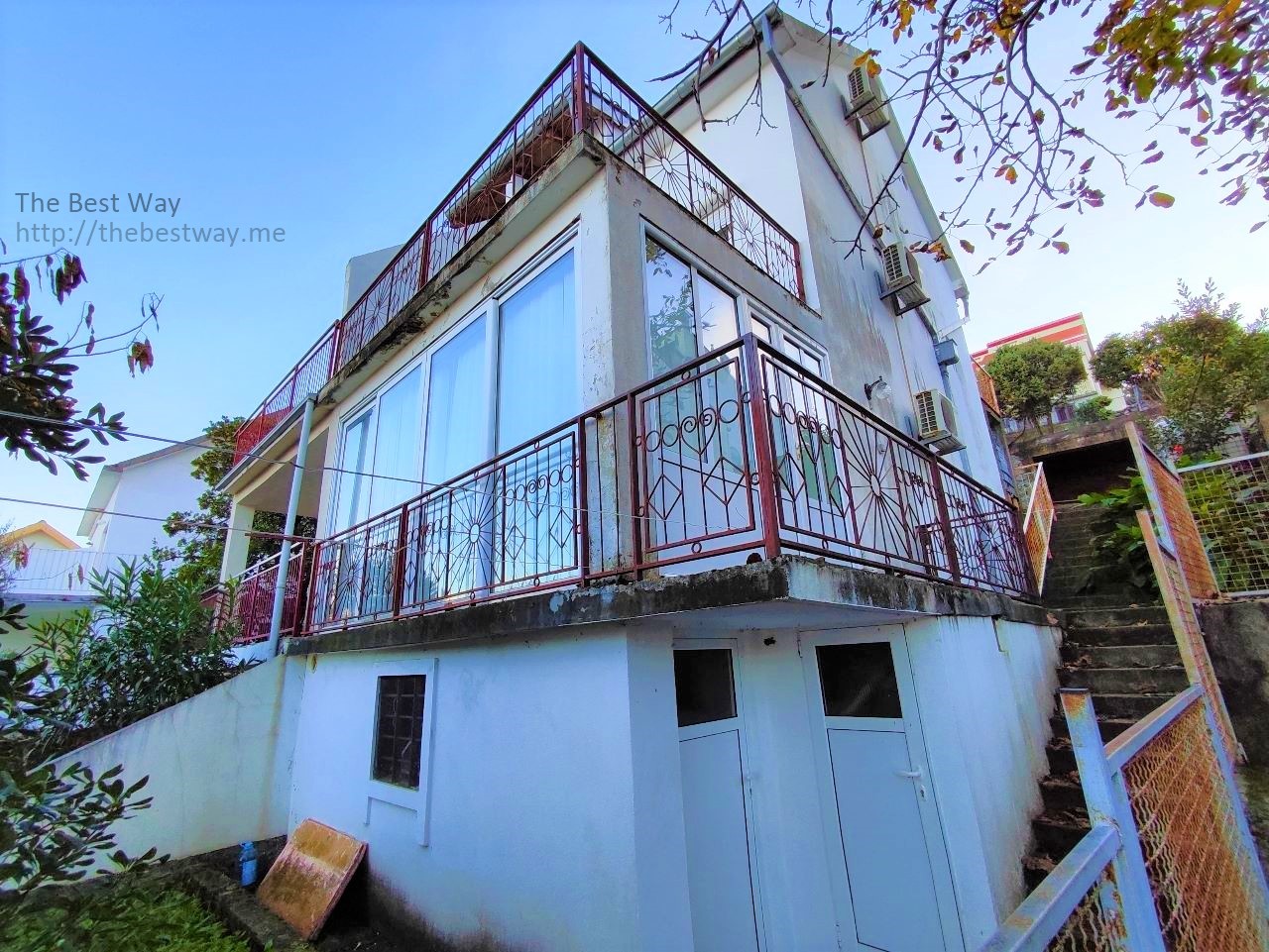 Površina kuće: 64 m2 Površina parcele: 87 m2. 1. kat: kuhinja, magacin, kupatilo 2. sprat: prostrani dnevni boravak, spavaća soba, kupatilo, zastakljena veranda, veliki panoramski prozori, 3. kat: soba, kupatilo. Sa prozora se pruža pogled na more i planine Vlastiti parking