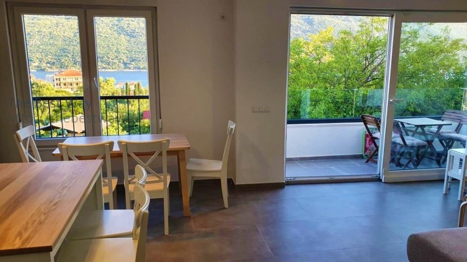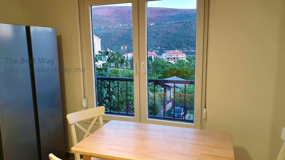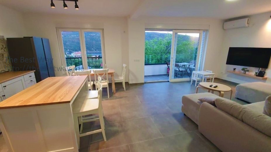 Herceg Novi. Kumbor. Apartman. Prodajem novi stan 67 m2 u Kumboru, pomoćno mjesto, pogled na more. Stan je južne orijentacije, moderno namješten dvosoban, parkirno mjesto. Cijena: 155.000 eura