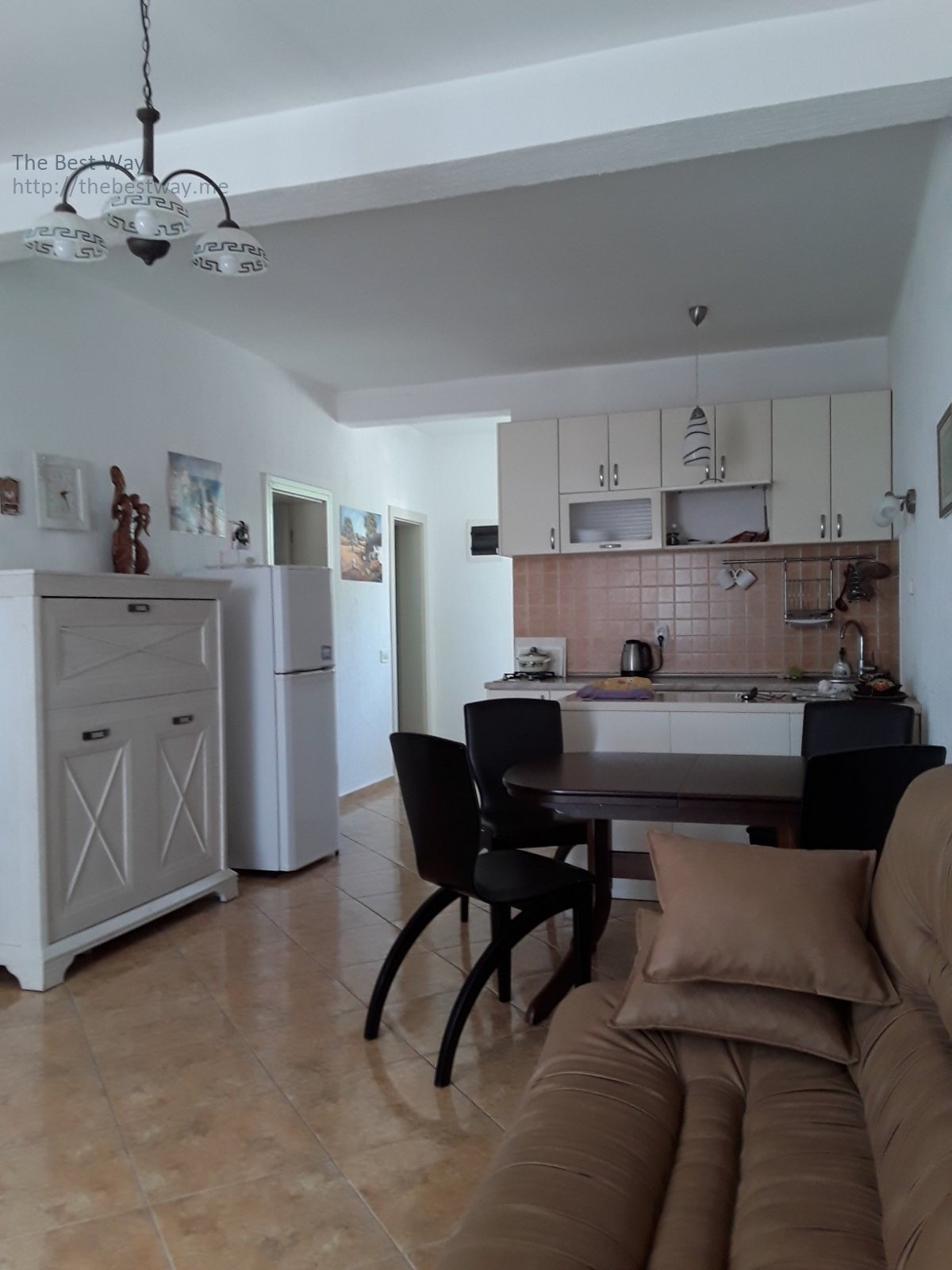 Состоит она из просторного коридора, светлой гостиной с выходом на террасу с видом на море, кухни , Двух спален, одна из которых с выходом на террасу и санузла.