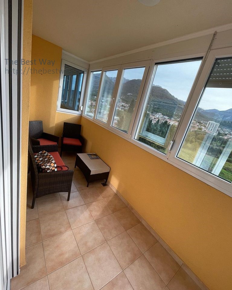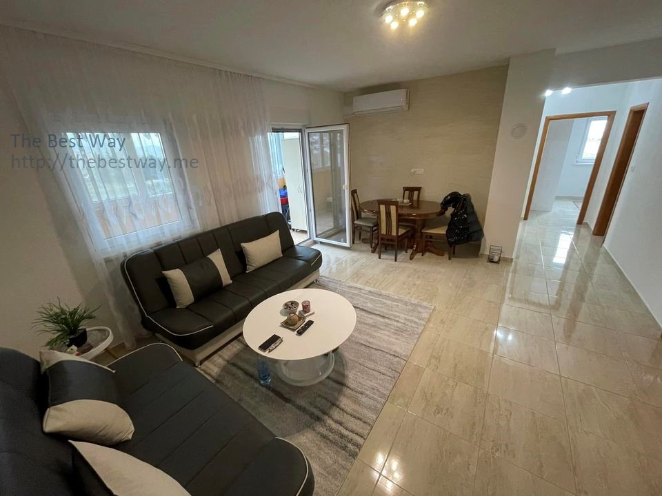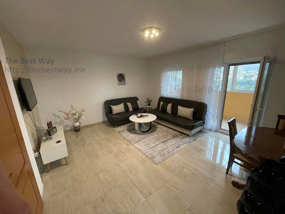Stan se po strukturi sastoji od ulaznog hodnika, prostranog dnevnog boravka u kombinaciji sa trpezarijom, kuhinje, dve spavaće sobe, kupatila, dve terase sa pogledom na grad i planine. Stan je kompletno namješten novim kvalitetnim namještajem. Opremljen svom potrebnom opremom. Apartman se nalazi 900 metara od mora i rive. Perspektivno područje, razvijena infrastruktura.