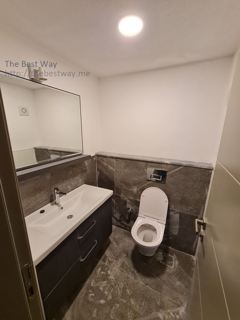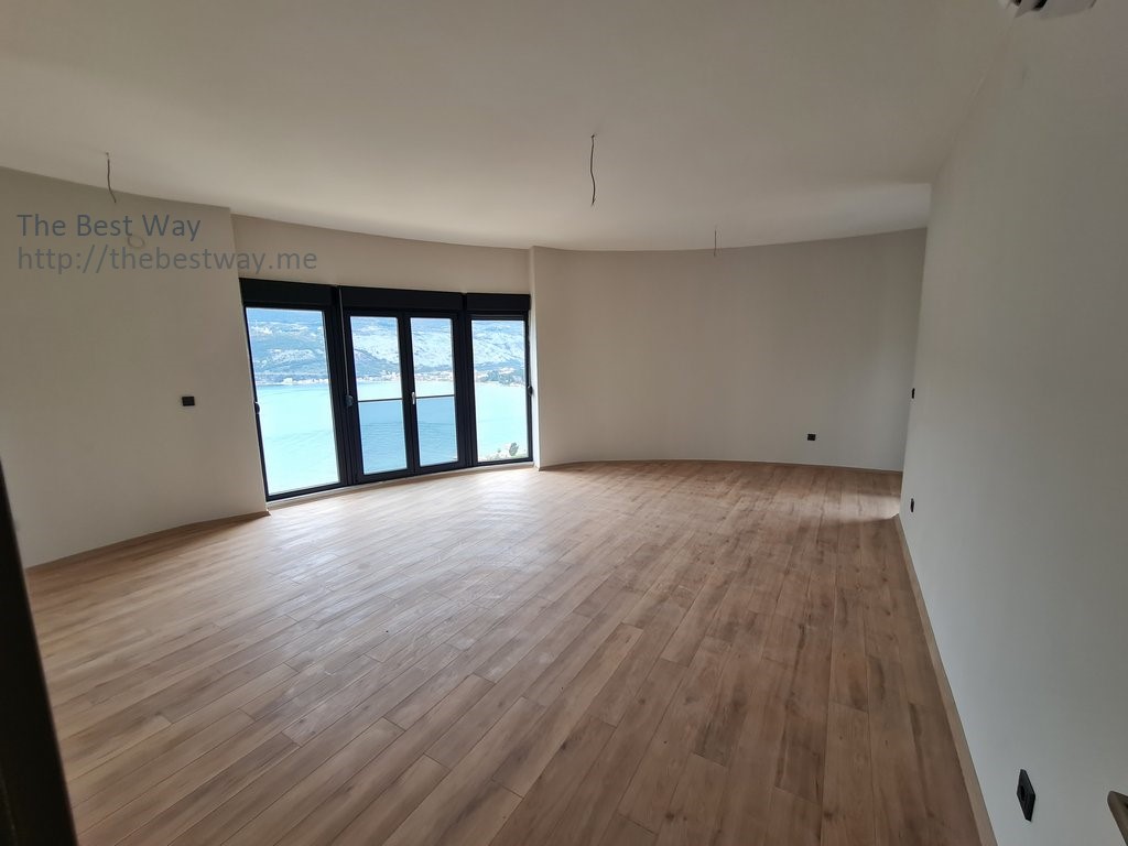 Stan se nalazi na trećem spratu u novoizgrađenom velelepnom kompleksu Sa terase i dnevnog boravka se pruža prekrasan pogled na more. + Moguće je kupiti parking mesto za 7.000 evra, kao i mesto u garaži za 15.000 evra.
