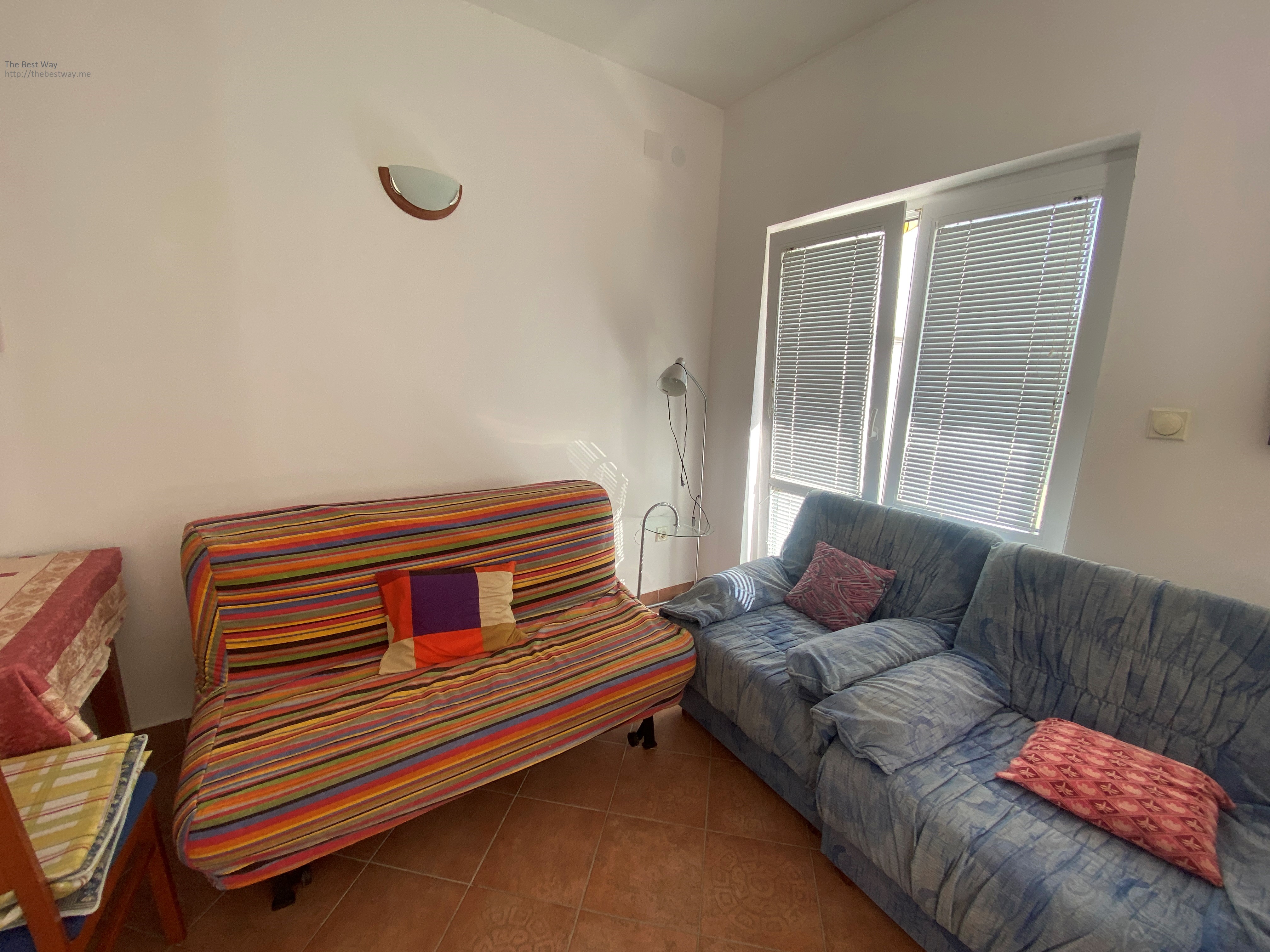 Stan u Baošićima 30 metara od mora. Površina sa terasom 63 m2. Raspored: Jedna spavaća soba, prostrani dnevni boravak, kupatilo.
