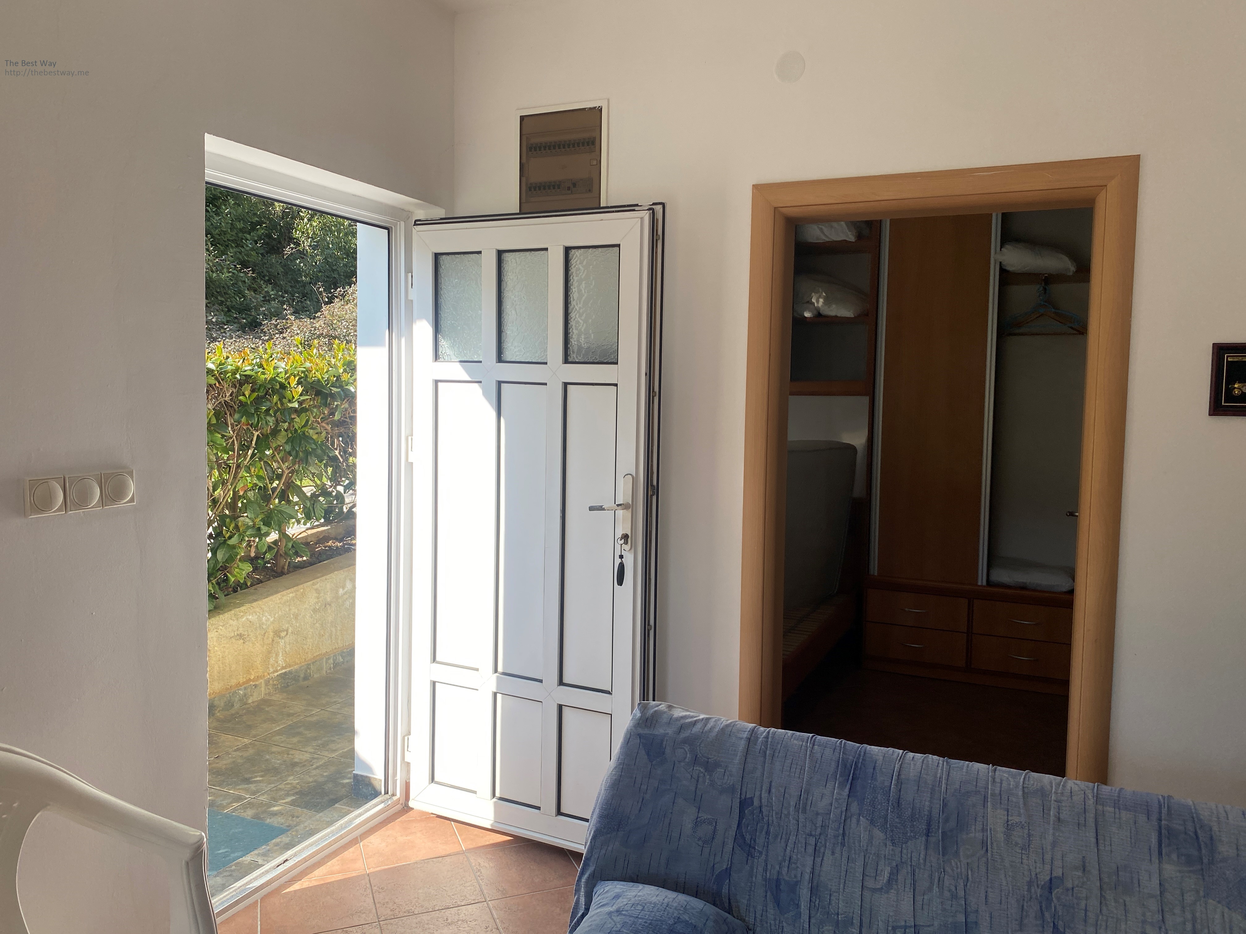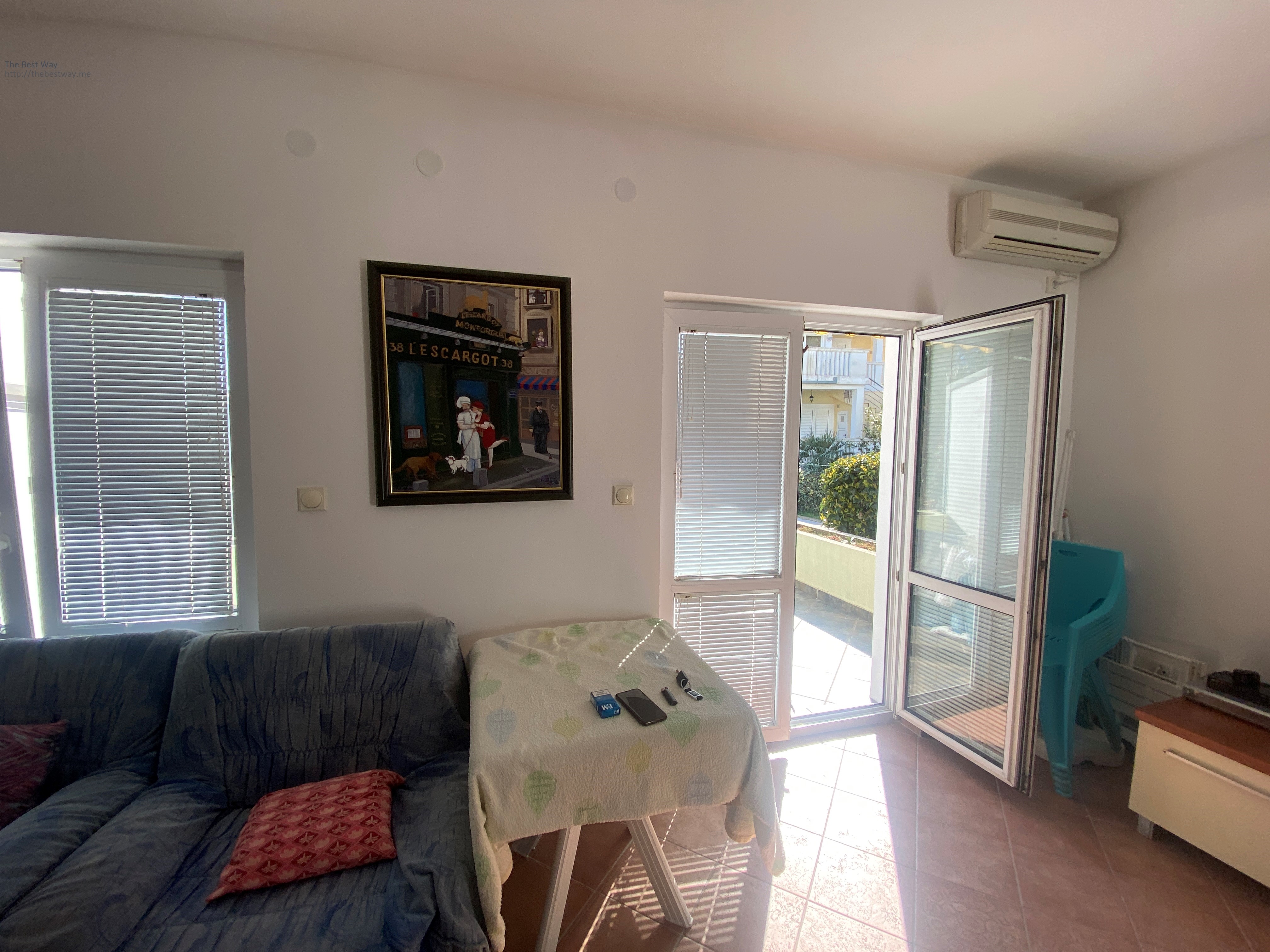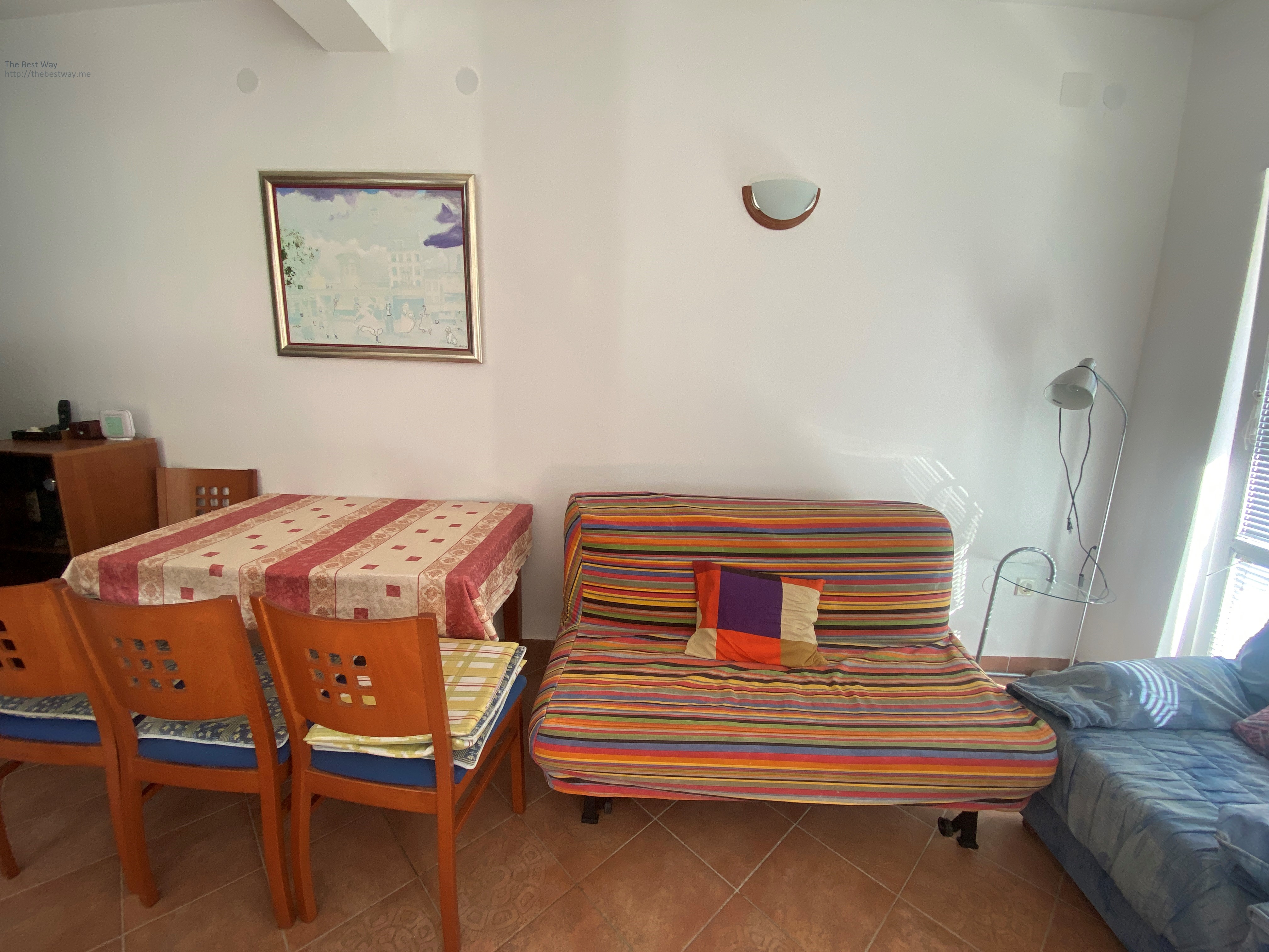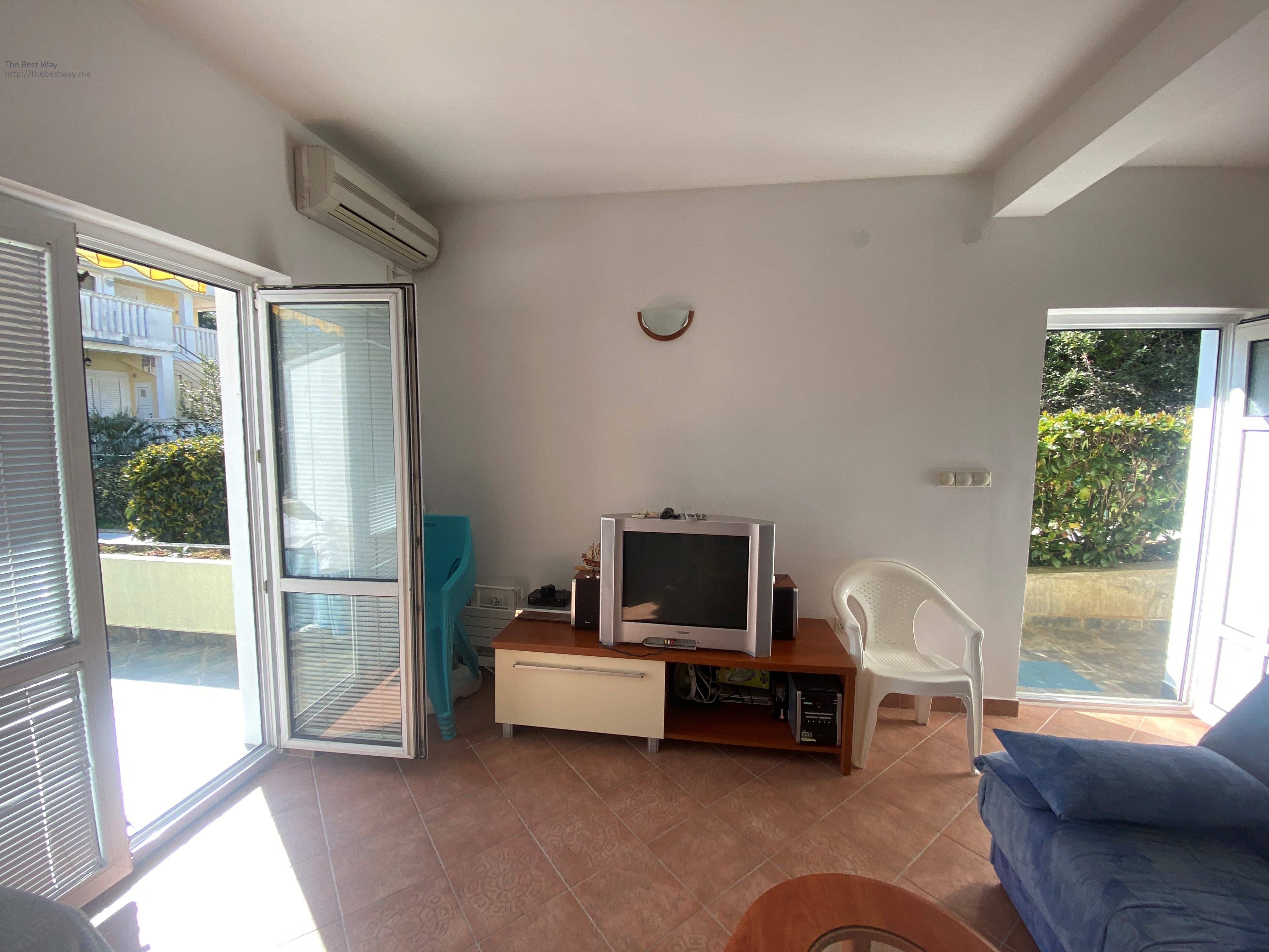 Apartment in Baosici 30 meters from the sea. Area with terrace 63 m2. Layout: One bedroom, spacious living room, bathroom.