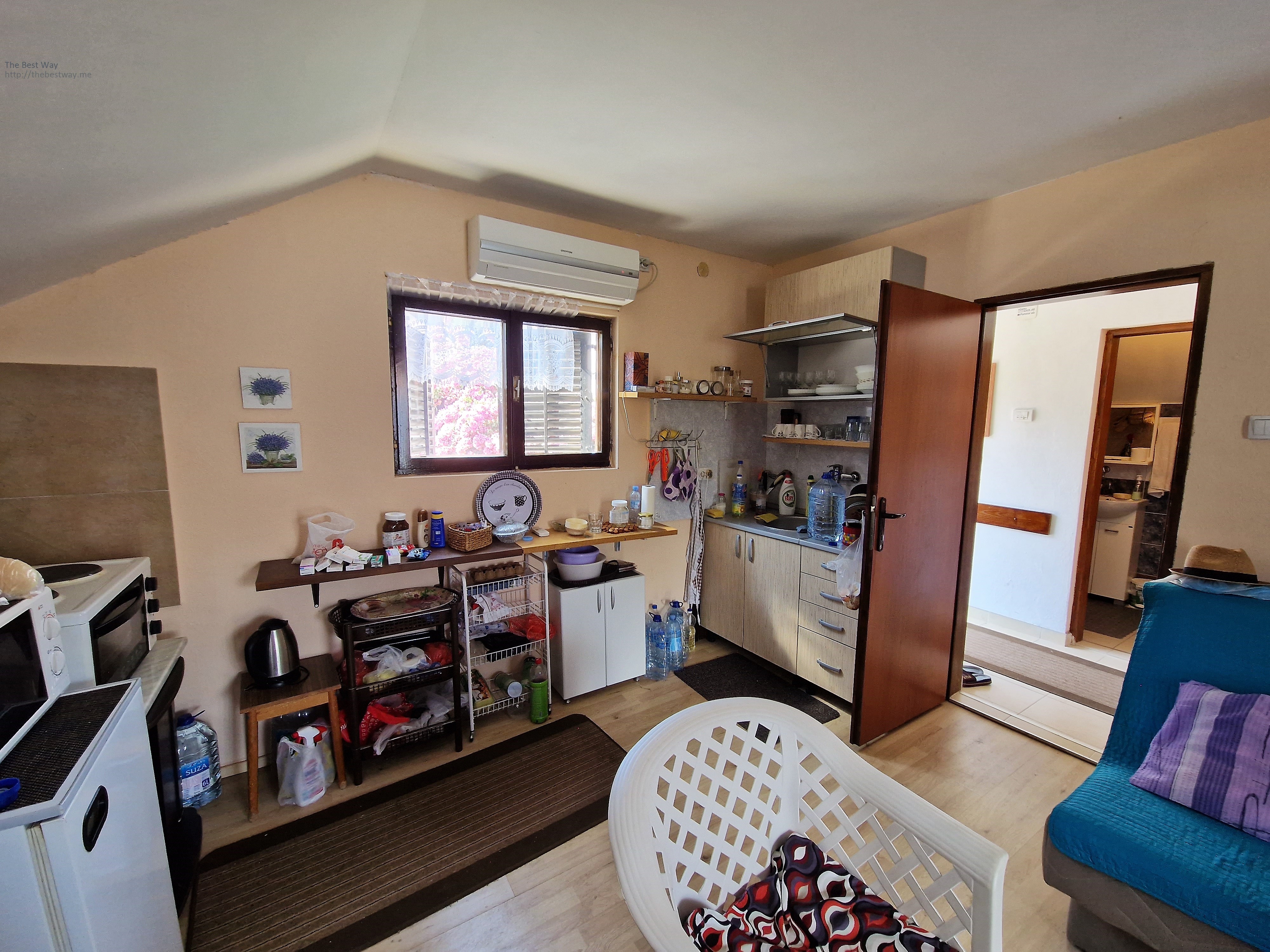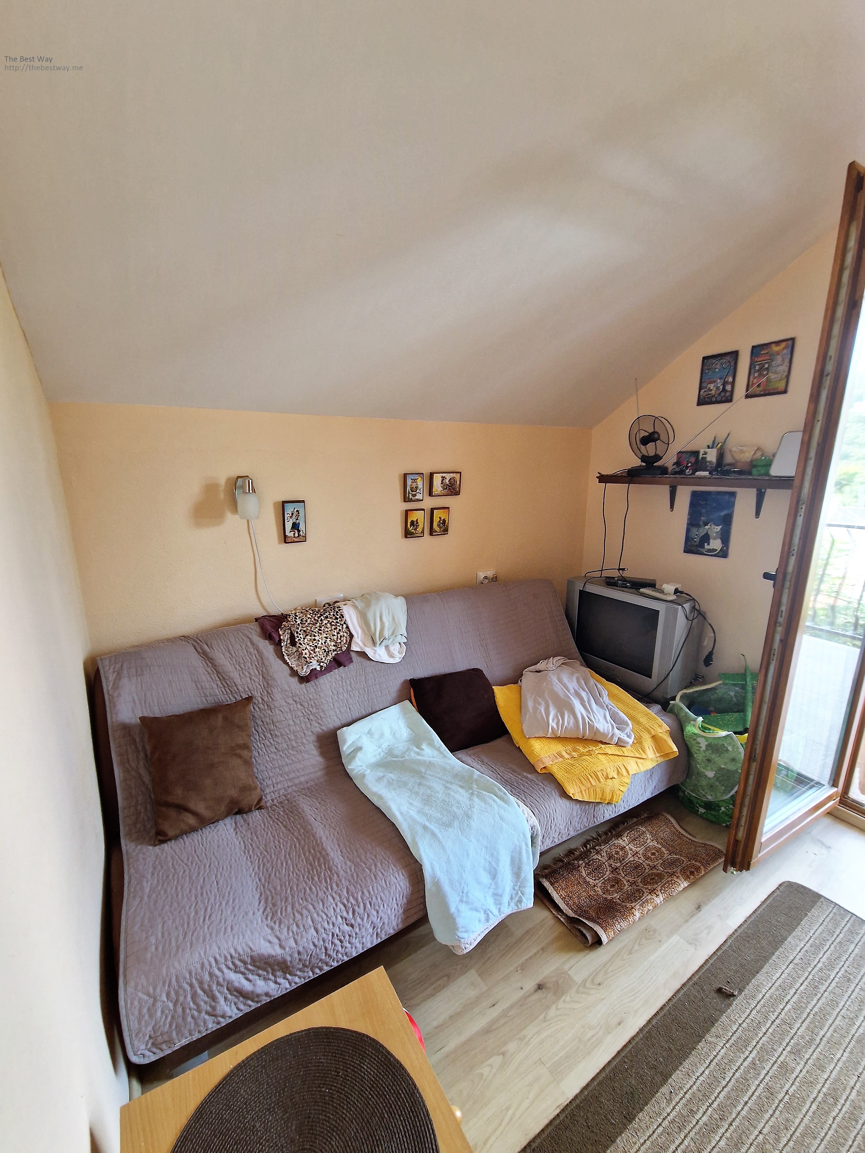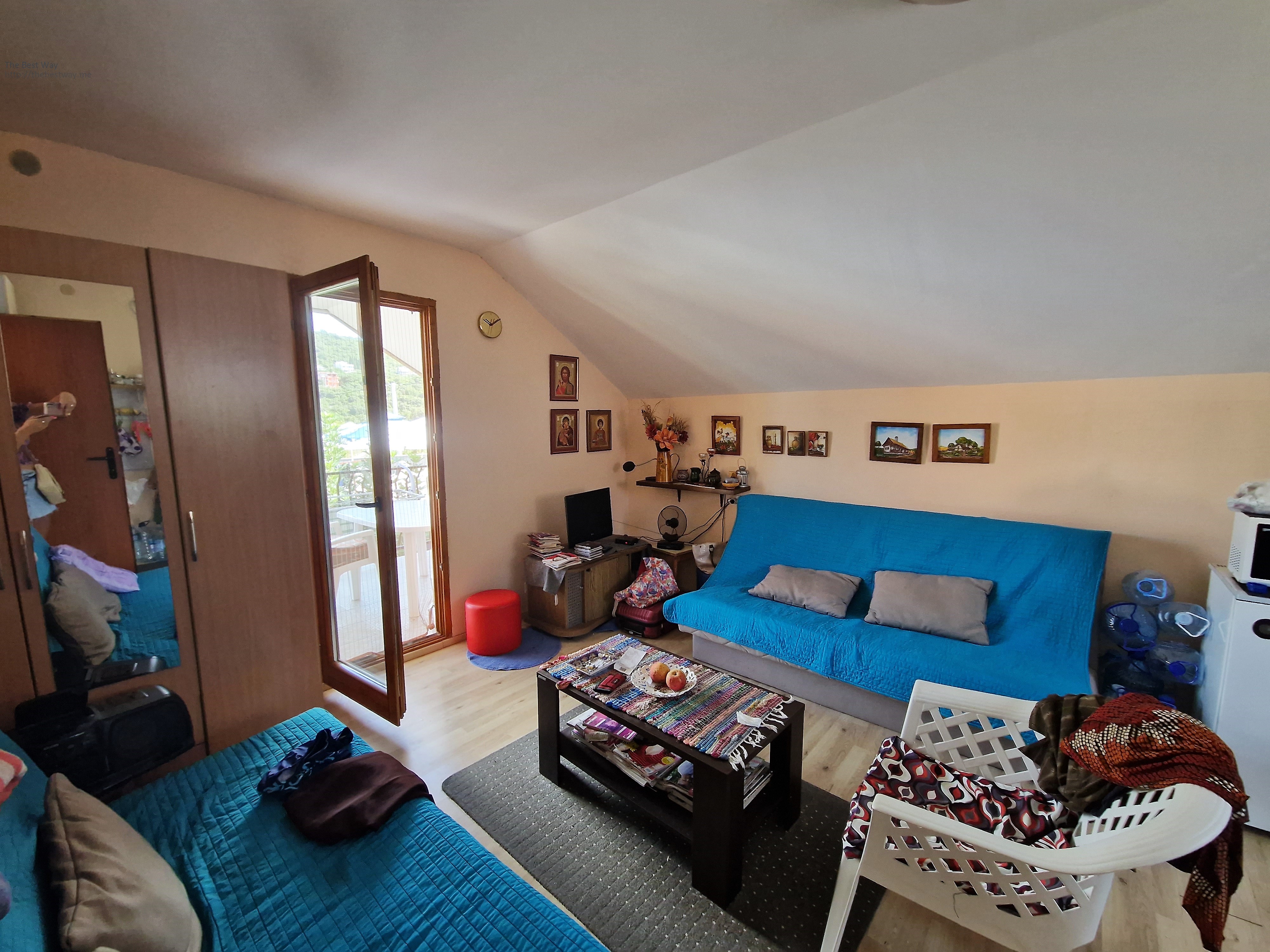 On the second floor there is an entrance hall, a spacious living room combined with a kitchen, a bedroom, a bathroom, a terrace overlooking the mountains. The house is furnished. The air conditioner is installed on the second floor.
