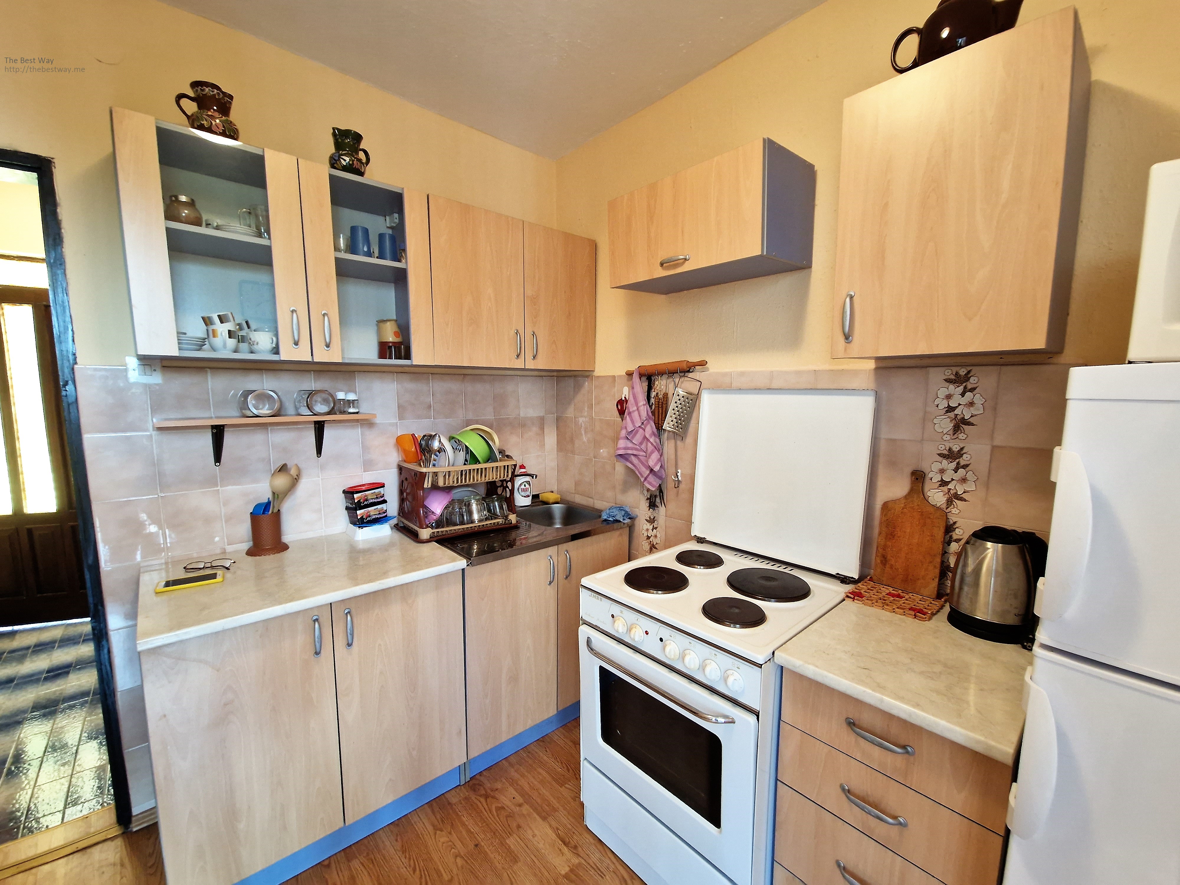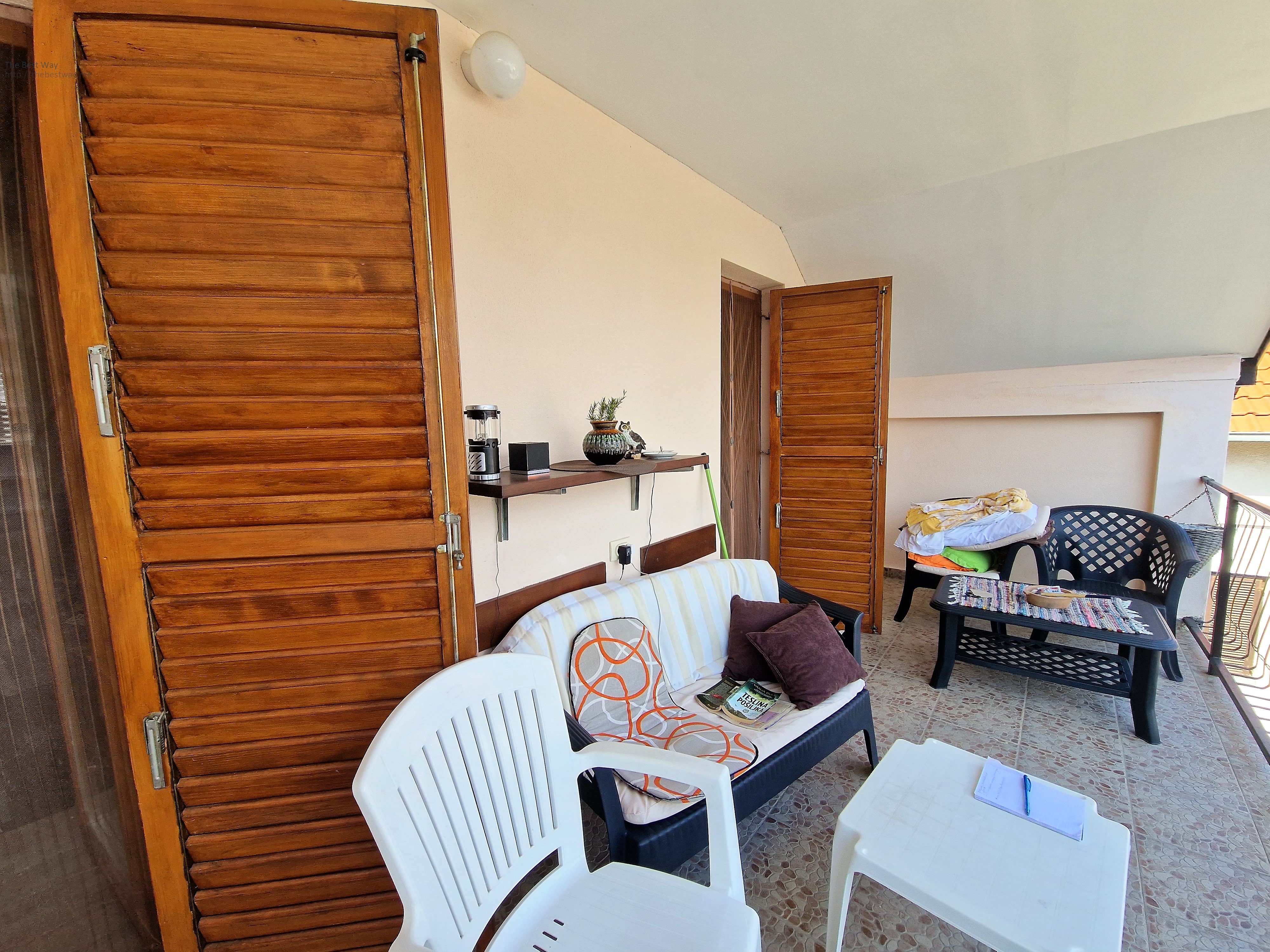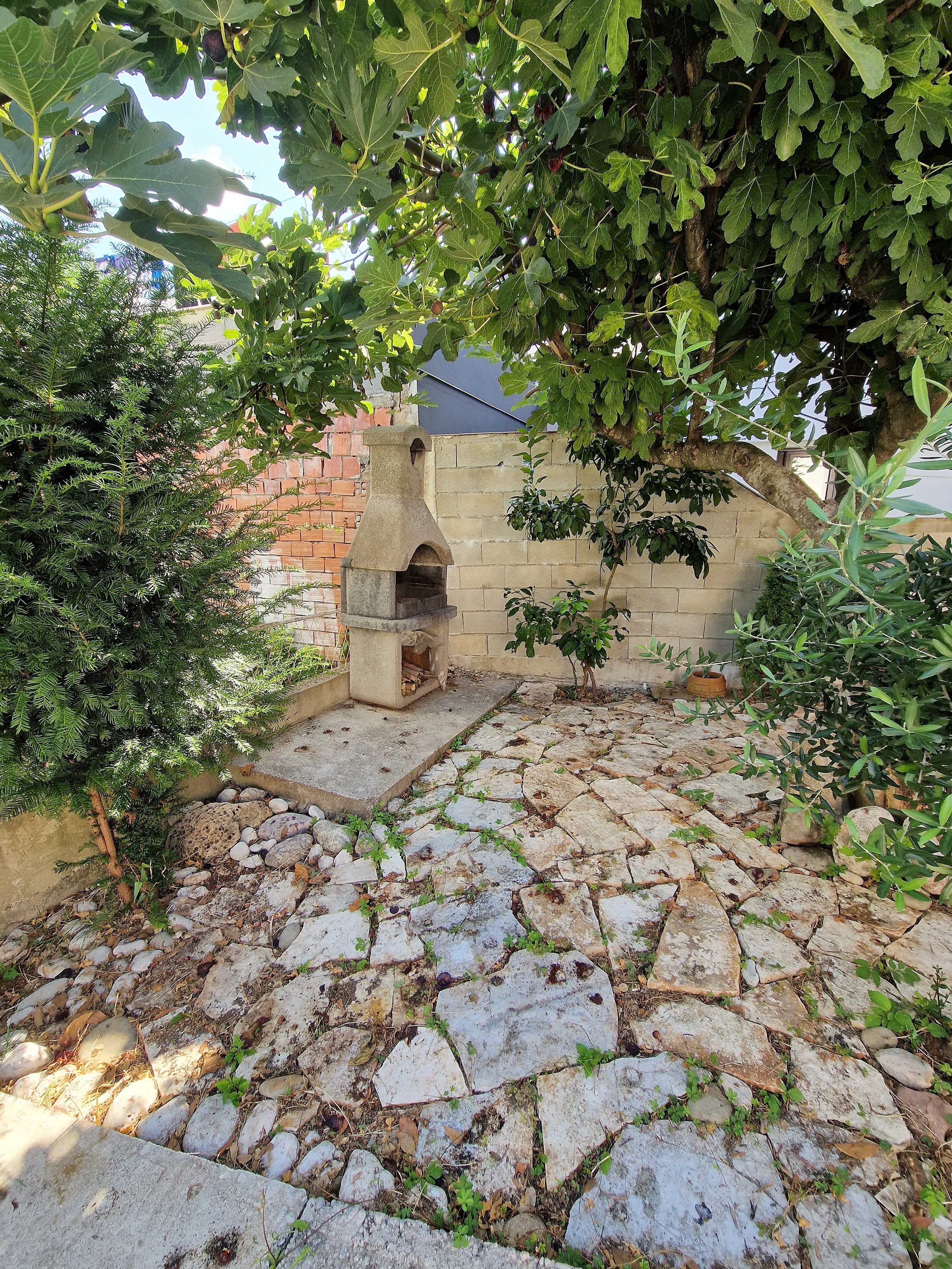 External staircase. The house is completely legal. Fenced area. Parking for several cars. Two water tanks 20 m3 (rain water). On the site grows figs, lemon. There is a barbecue area.