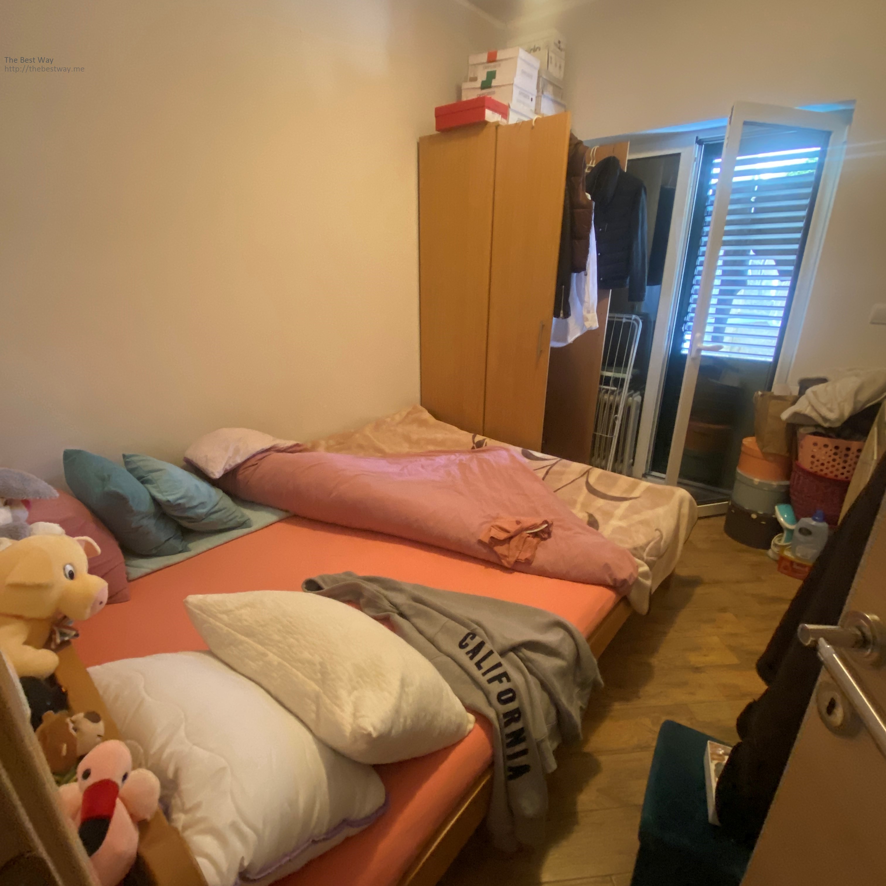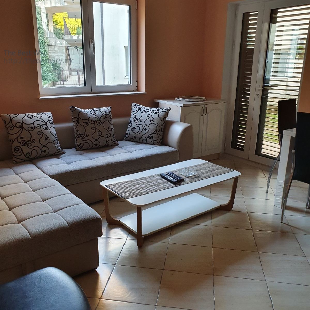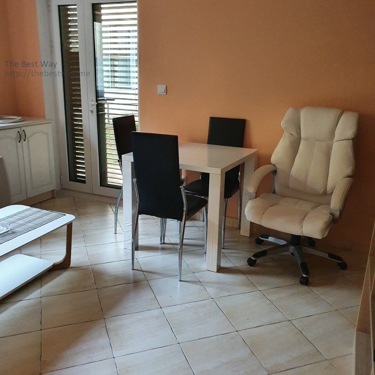 Površina 36 m2. 1. kat Raspored: Dnevni boravak + Kuhinja, Spavaca soba, Kupatilo. Nov namještaj, kućanski aparati Vlastita terasa Cijena 75 000