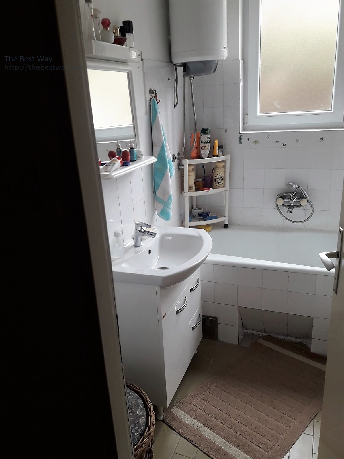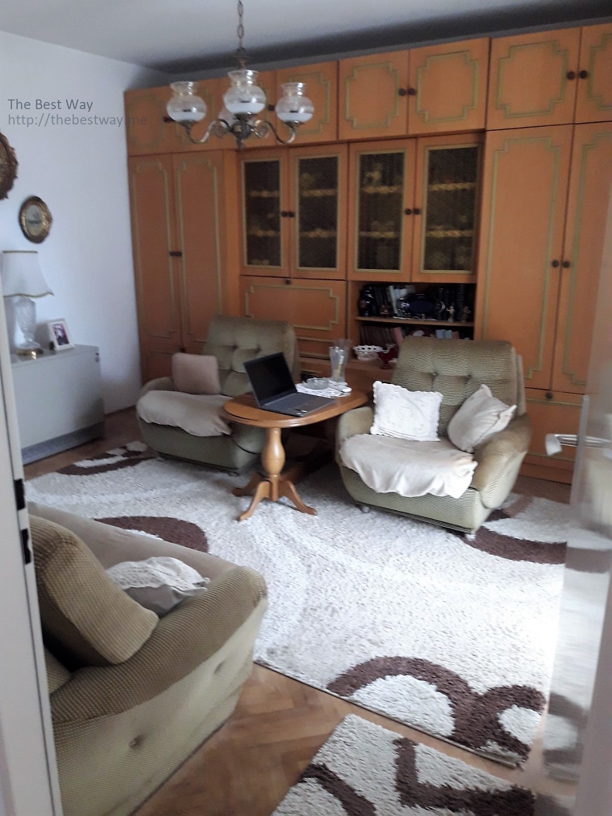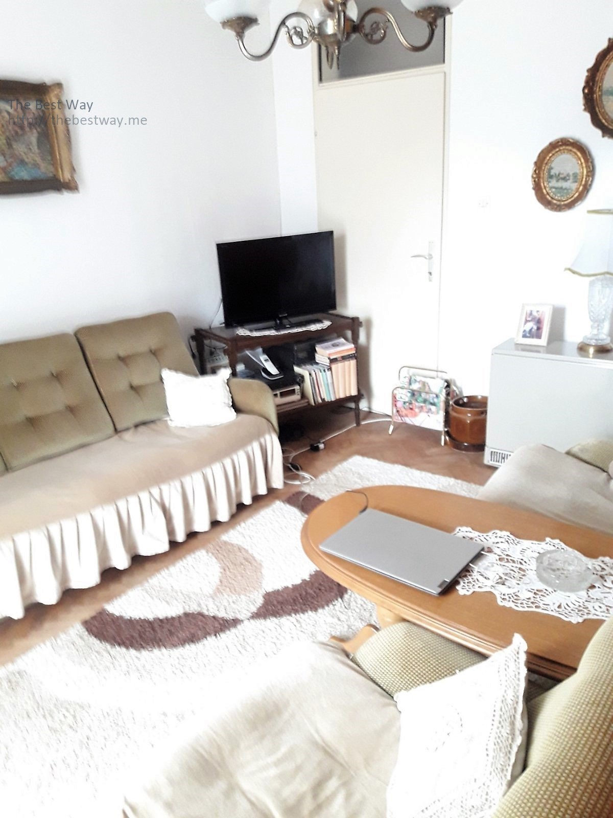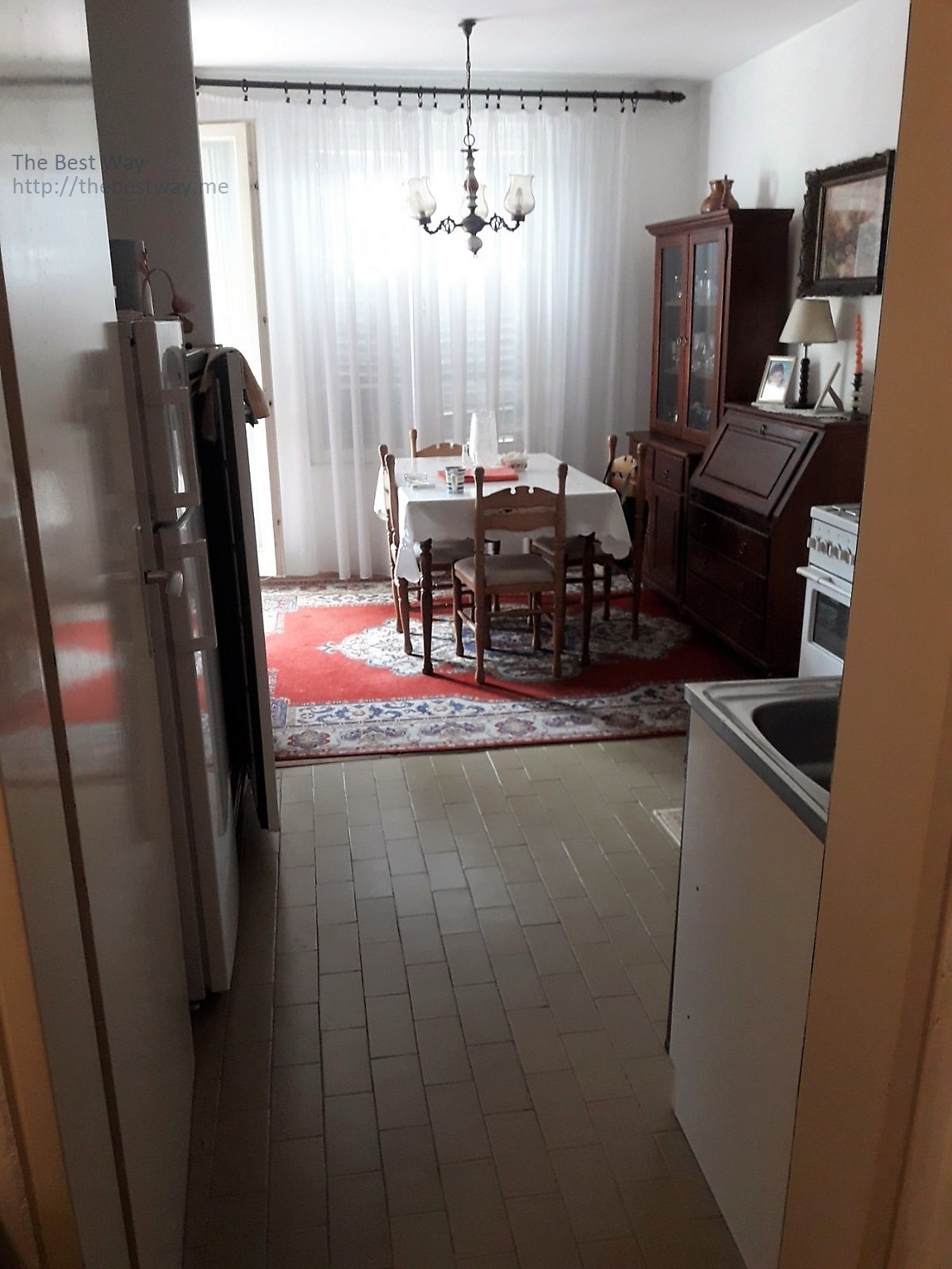 Area 69 square meters + 2 terraces 2nd floor in a 4 storey building. Layout: 3 rooms (two bedrooms and a living room), 2 toilets (bathroom and toilet), kitchen and dining room. Two corridors that separate the bedrooms and living room. One small terrace has access to the bedroom, and a large terrace to the living room and has access to the dining room. Cellar and parking in front of the building. Distance to the sea: 900 meters