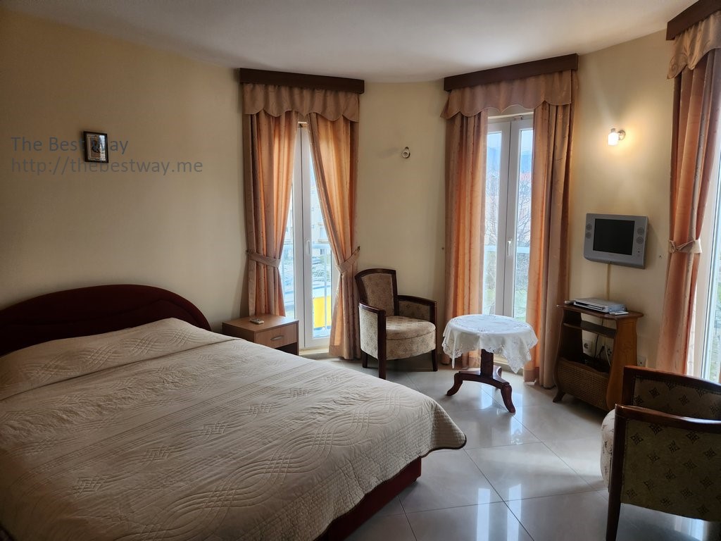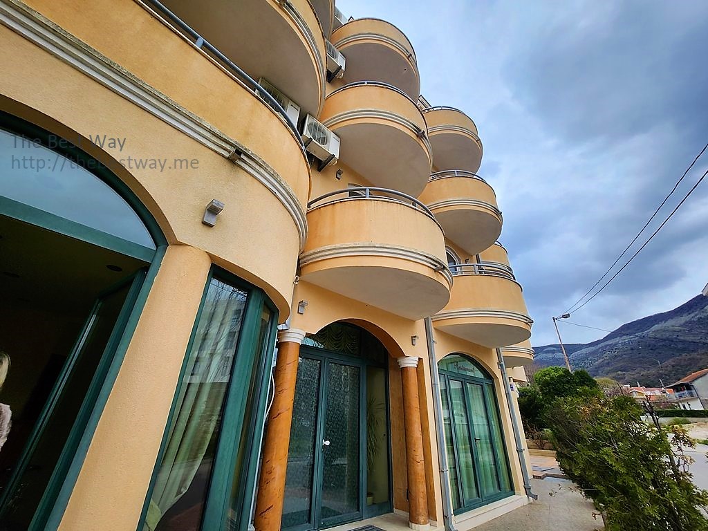 Prodaje se hotel na drugoj liniji, 100 metara od mora. Zgrada ima 4 sprata, na prvom spratu se nalazi recepcija, kafić u posebnoj prostoriji i restoran sa letnjom terasom. Na drugom i trećem spratu ima 16 soba, po 8 na spratu, identičnog rasporeda. Na potkrovlju se nalaze tri prostrana apartmana sa velikim terasama. Prekrasan pogled na more i planine. Postoji alarm. Hotel nije primao goste od 2020. godine, međutim, unutrašnja dekoracija je u vrlo dobrom stanju, nema tragova vlage ili plijesni.