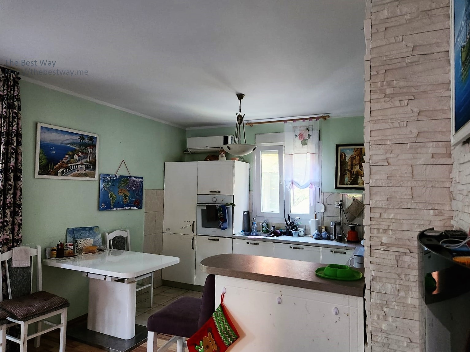House for sale with a magnificent garden in Zelenika. The plot of 400 m2 is planted with many different trees and flowers. There is also a parking space, a small workshop-storeroom and a rostil.