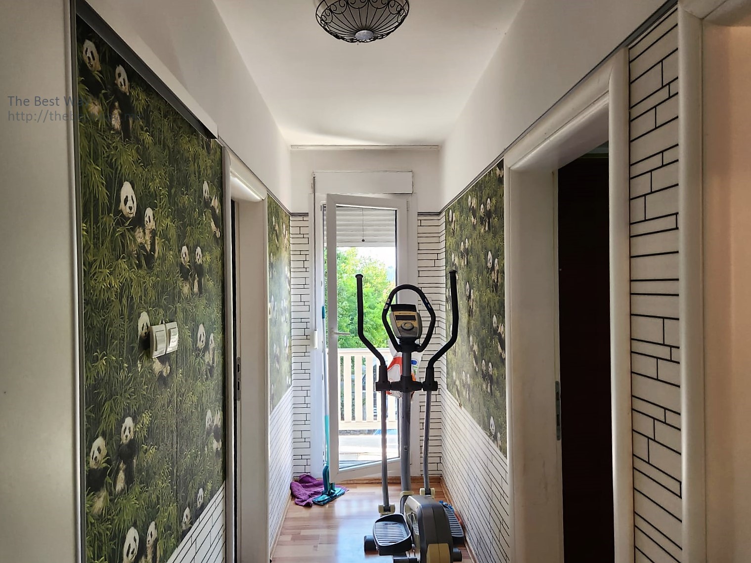 Inside the house, with an area of 130 m2, there are 4 bedrooms, 2 bathrooms, a storage room, a living room with a kitchen. There is a chimney, the ability to put a wood-burning stove or fireplace. On the ground floor, a large glazed terrace overlooking the garden adjoins the kitchen. On the second floor there is an open terrace overlooking the mountains and the plain.