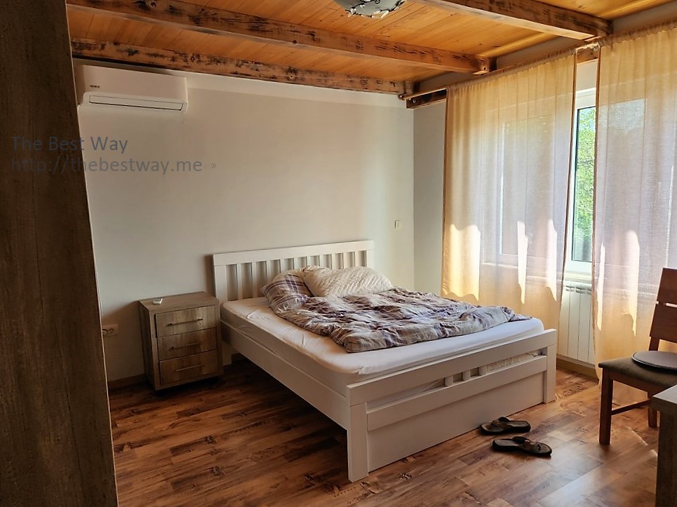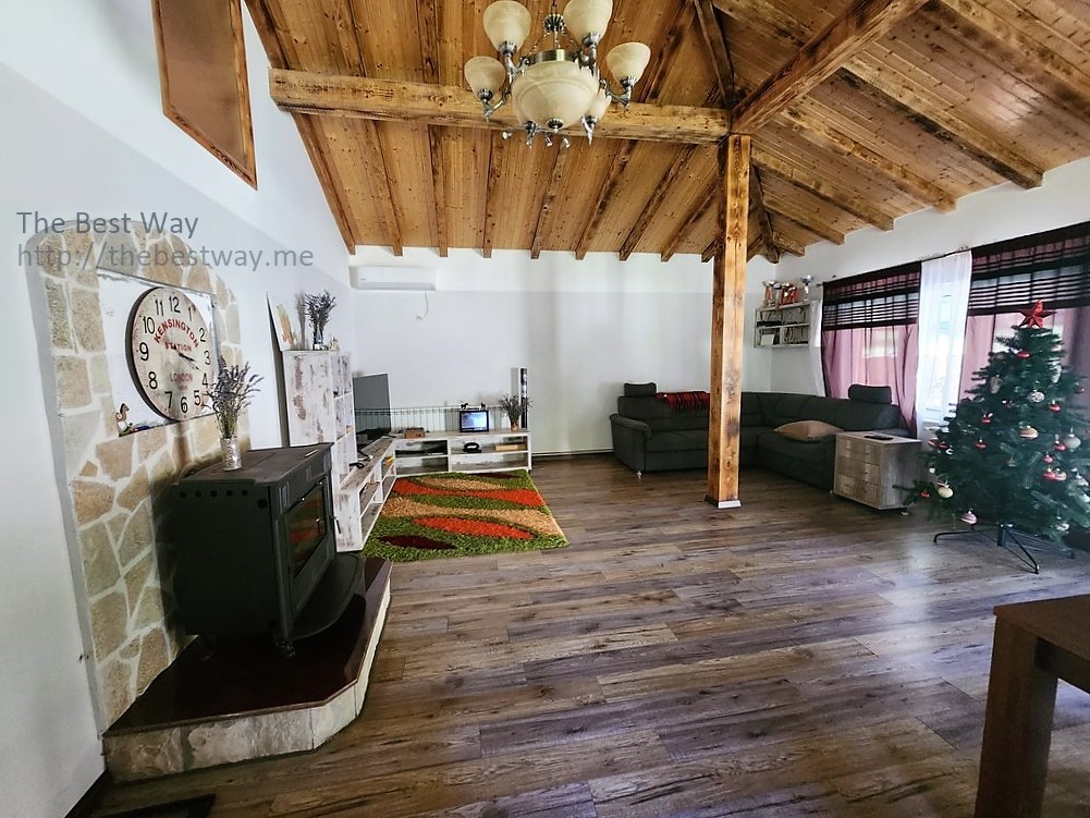 Na drugom spratu se nalazi dnevni boravak. Tri spavaće sobe, kupatilo, veliki dnevni boravak sa kuhinjom, kamin i visok plafon sa drvenim nosećim stubovima.