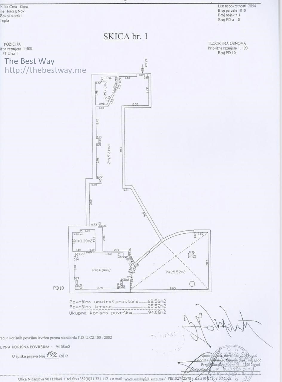 Na samoj granici Topla-Igalo, 20 metara od mora i plaža, iznajmljuju se 2 udobna, svijetla stana (kombinovani u jedan, ali sa mogućnošću razdvajanja) na 4. spratu manje stambene zgrade sa liftom. Idealno za veliku porodicu. Svaki apartman ima svoju opremljenu kuhinju, velike dnevne sobe (sa mogućnošću pomoćnih ležajeva), odvojene spavaće sobe sa luksuznim King Koil dušecima, dva kupatila. Zajednička ogromna terasa (32 m2) sa namještajem, prekrasnim pogledom na more i planine. Površina jednog stana je 94 m2, drugog 64 m2. Parkiranje je moguće u zatvorenom prostoru. Apartmani su opremljeni novim modernim namještajem i tehnikom, brzim internetom. Podovi od mermera i parketa. Jedan od stanova ima prekrasan radni kamin.