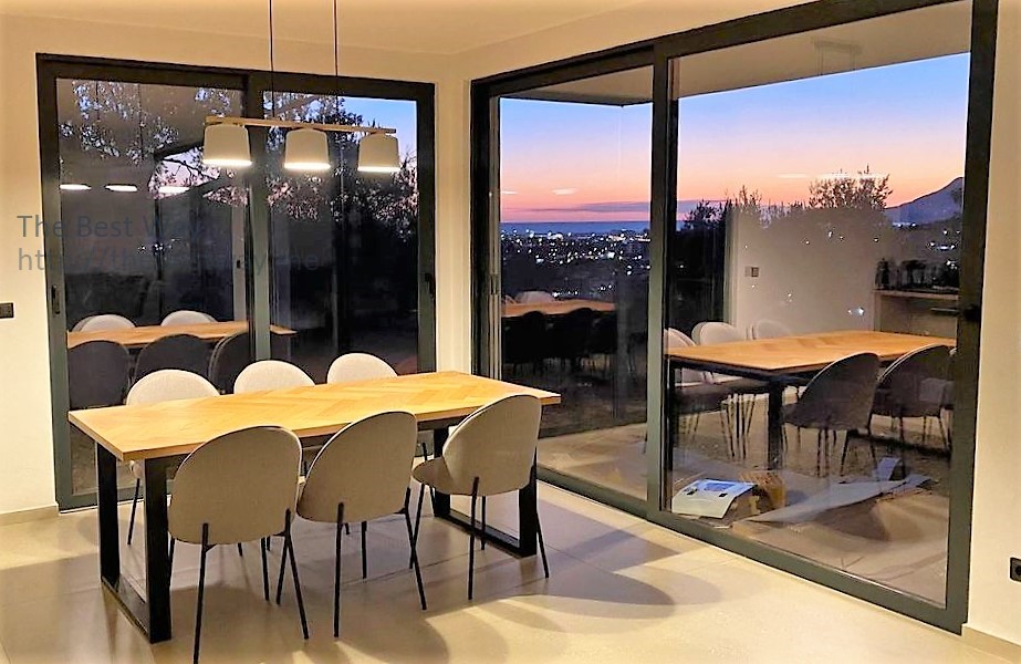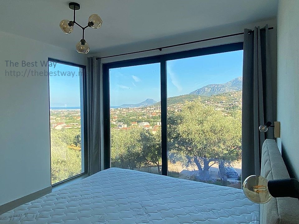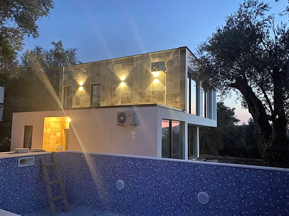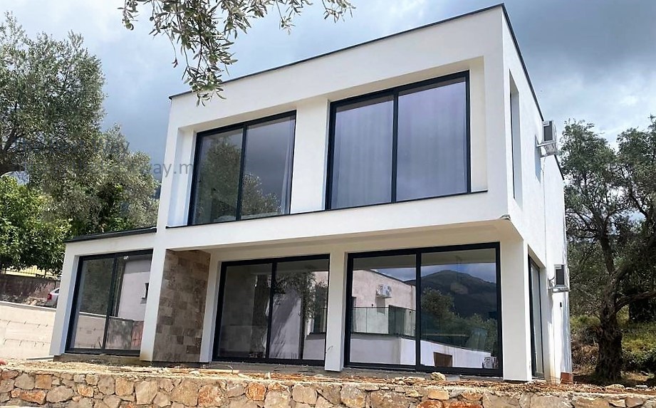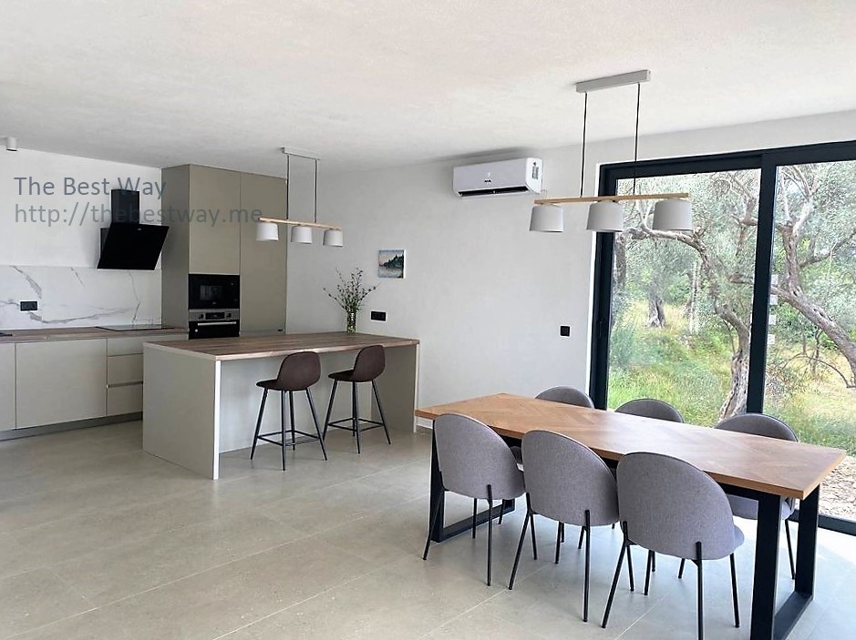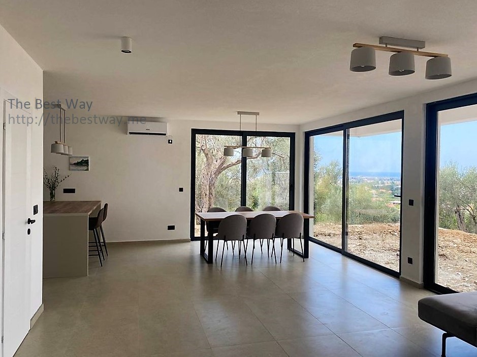 The property is sold with full finishing, heated floors on a water circuit, a kitchen equipped with modern appliances, and a 7x4m swimming pool. The facade of the house is decorated with stone. Panoramic sliding windows 3x3m, electric roller shutters. Landscaped area with barbecue area. There are 5 ancient olive trees on the plot. The complex includes 4 modern villas built in a cascading olive grove. Panoramic view of the sea, old Bar, mountains. The distance to the sea is 5000 meters, the distance to the old Bar is 2000 meters. It is possible to sell the entire complex.