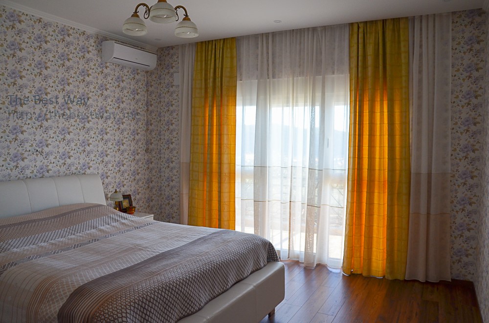 The house is ideal for year-round living. On the ground floor there is an entrance hall, a living-dining room combined with a kitchen, a bedroom-study, a bathroom, a technical room, a spacious terrace, there is an exit from the technical room to an attached spacious storage room. On the second floor there are two bedrooms with dressing rooms, a bathroom, three terraces. The house is fully furnished and equipped with all necessary appliances. The house has underfloor heating, a heat pump, good heat and waterproofing. Electricity, 25m2 tank (20evro/6 m3), sewer - septic tank. More than 60 fruit-bearing trees (grapes, 10 olives, cherries, kiwis, apricots, peaches, fortunella, nectarines, feijoa, pomegranates, nuts, tangerines, oranges, mulberries and a greenhouse) grow on a spacious cascading plot. Quiet, peaceful area. Paved road. The house was built for themselves and with a soul. The owners have a full photo report on construction work. Sea, city and mountain views. The distance to the center is 3000 meters, to the sea 5000 meters.