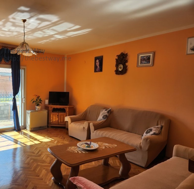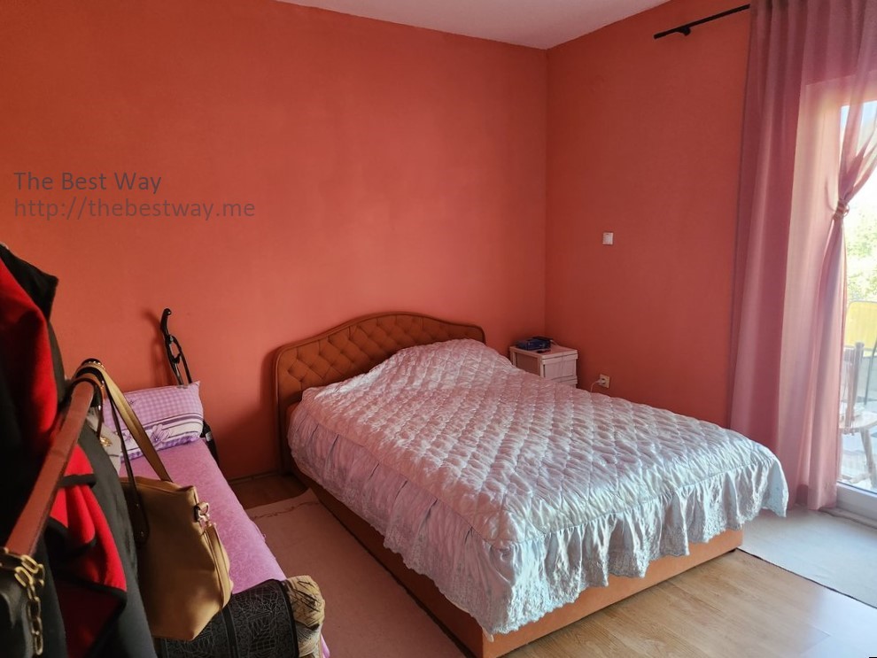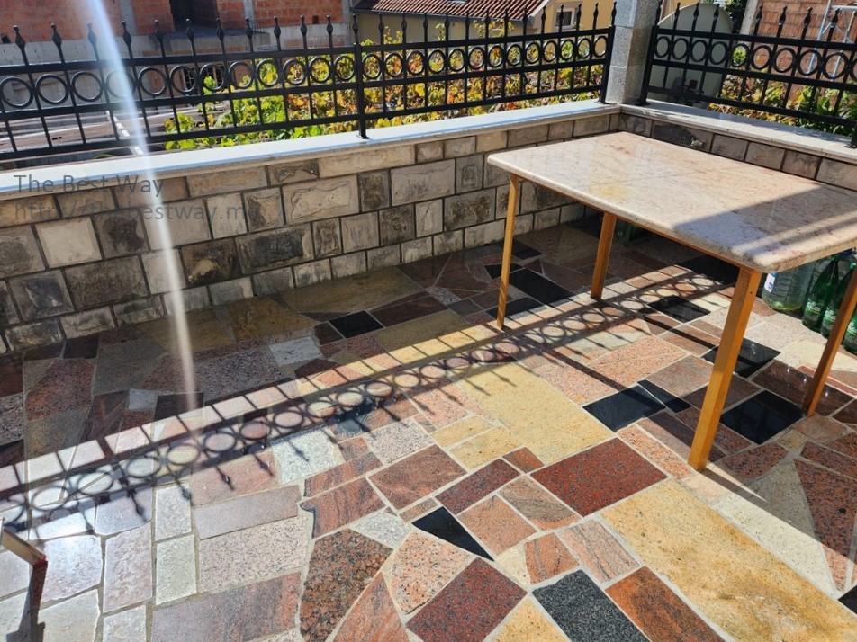Veličina kuće: 1. sprat: 105 m2 sa garažom, trpezarija, dnevni boravak, garaža, radionica, ostava ispod stepenica. 2. sprat 98 m2 gornji sprat, prostran dnevni boravak sa kuhinjom, terasa sa pogledom na more, dve spavaće sobe, kupatilo i još jedna terasa sa pogledom na dvorište. Zemljište je oko 370 m2, ne računajući po ršinu baze kuće 5 spavaćih soba, 2 kuhinje, 3 Kupatila, 2 balkona,