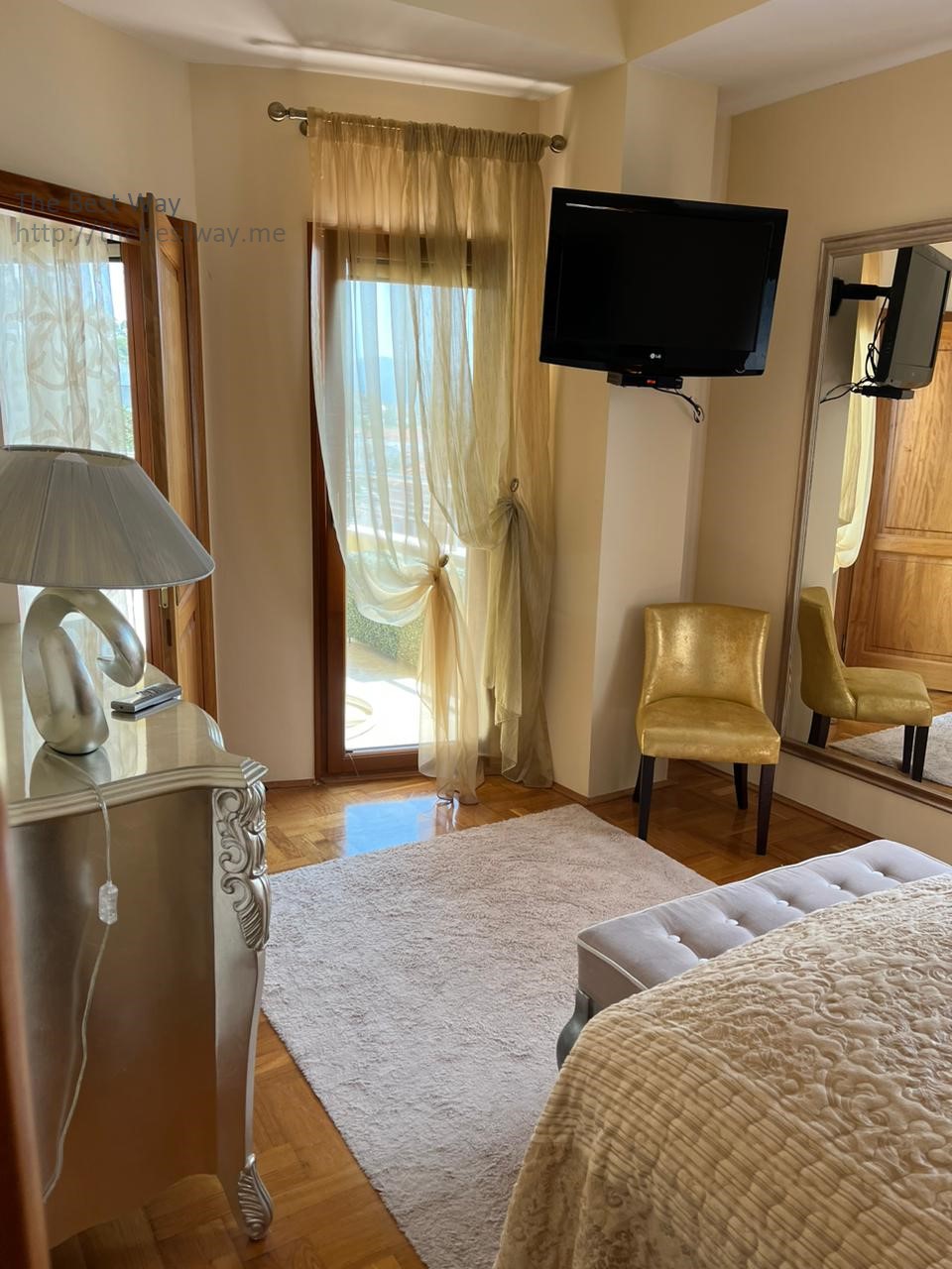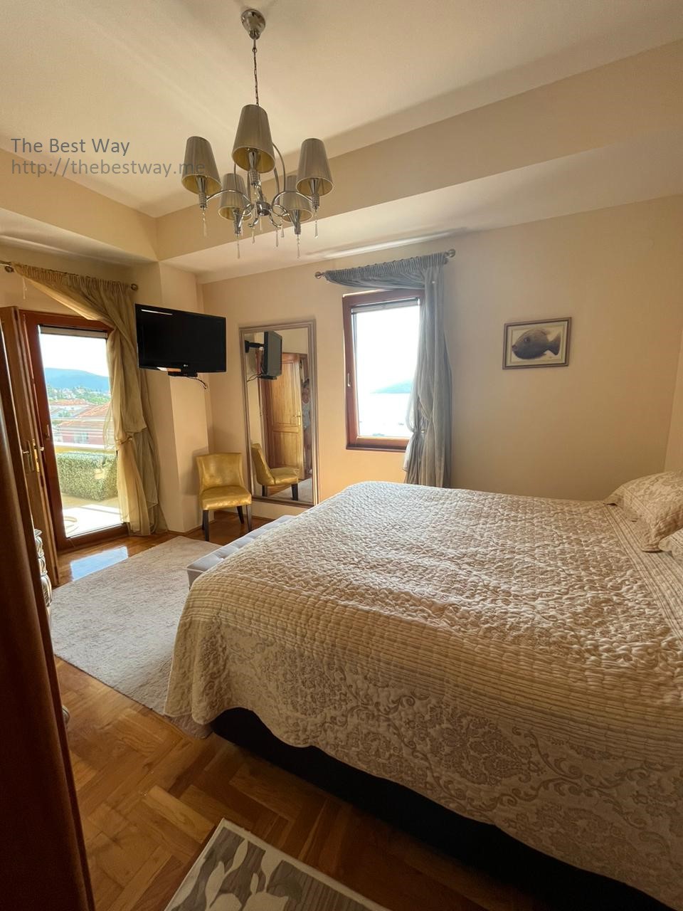 On the border of Topla-Igalo, 20 meters from the sea and beaches, 2 cozy bright apartments are for sale (combined into one, but with the possibility of separating them) on the 4th floor of a small apartment building with an elevator. Ideal for a large family. Each of the apartments has its own equipped kitchen, large living rooms (with the possibility of additional beds), separate bedrooms with King Koil luxury mattresses, two bathrooms. The total huge terrace (32 m2) with furniture, magnificent views of the sea and mountains. The area of one apartment is 94 m2, the second 64 m2. It is possible to park cars in a closed area. The apartments are equipped with new modern furniture and appliances, high-speed Internet. Marble and parquet floors. One of the apartments has a beautiful working fireplace.