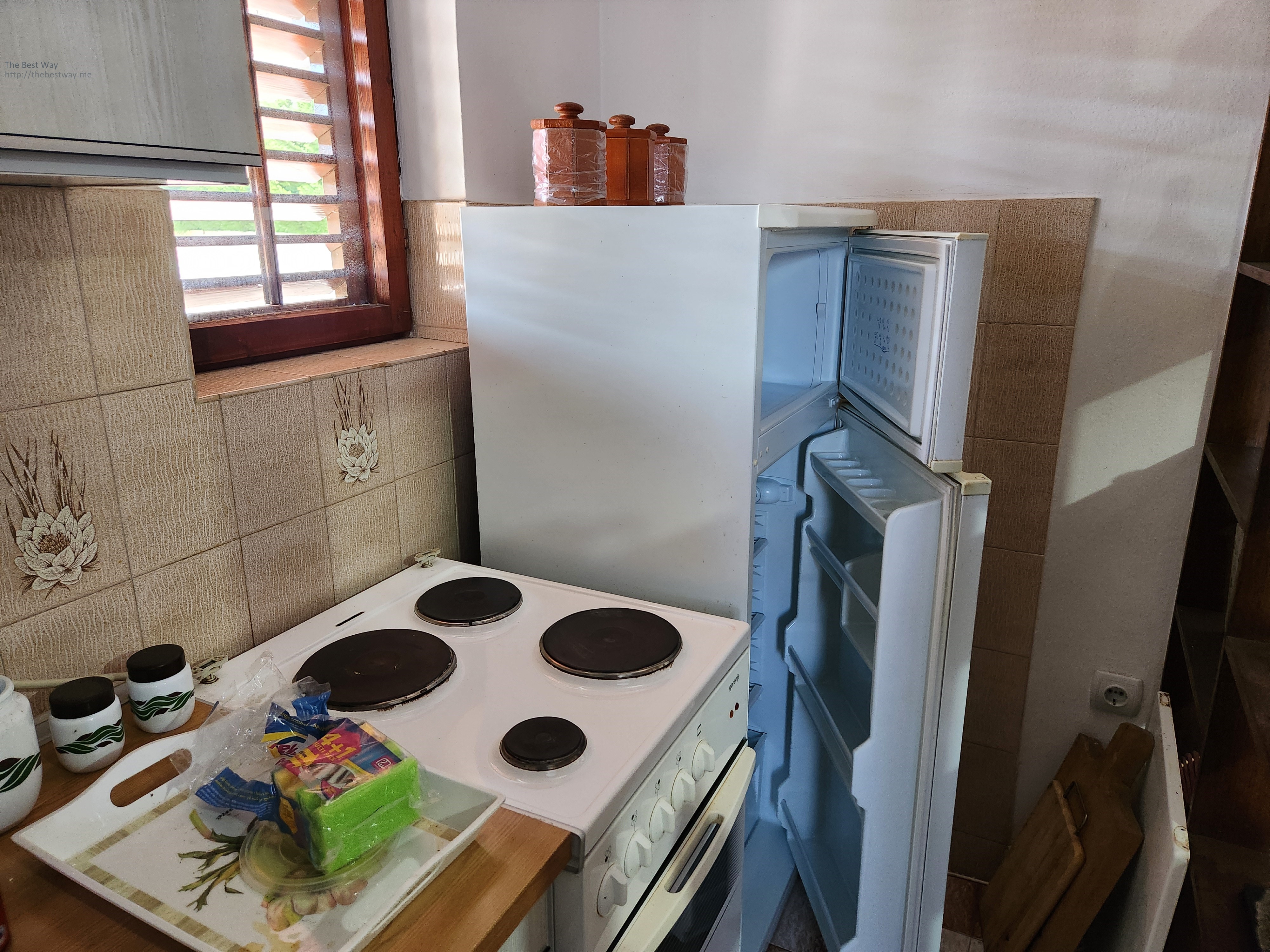 The house is separated from the embankment with tourists by a stone fence, behind which there is a well-kept courtyard with a tall spruce tree. Thanks to this, the apartments have privacy. Within walking distance there are shops, a kindergarten, a school, many beaches and cafes. Parking is located opposite the house.