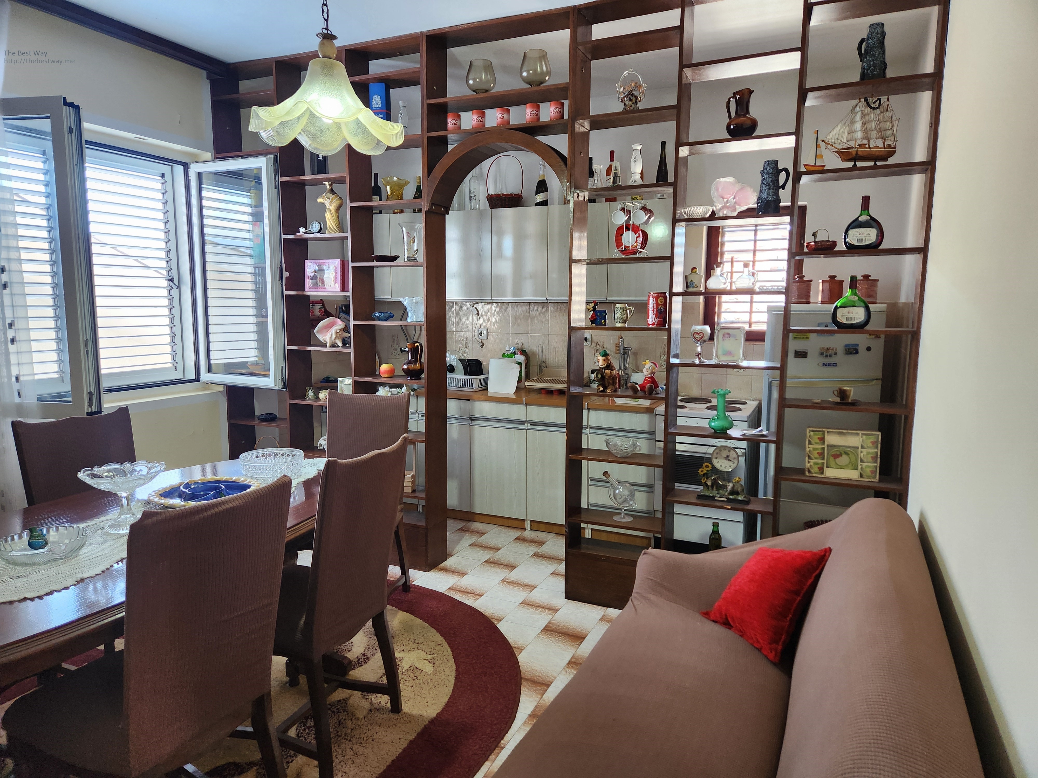 Apartments for sale in a great location, right opposite the beach in Bijela. They are located on the second floor of the house and have their own spacious terrace. The layout includes an entrance hall, two bedrooms, a living room, a bathroom and a kitchen with dining area. The apartment has high ceilings, but not attic ones. Inside there is good quality furniture made from solid oak, wooden doors and floors.