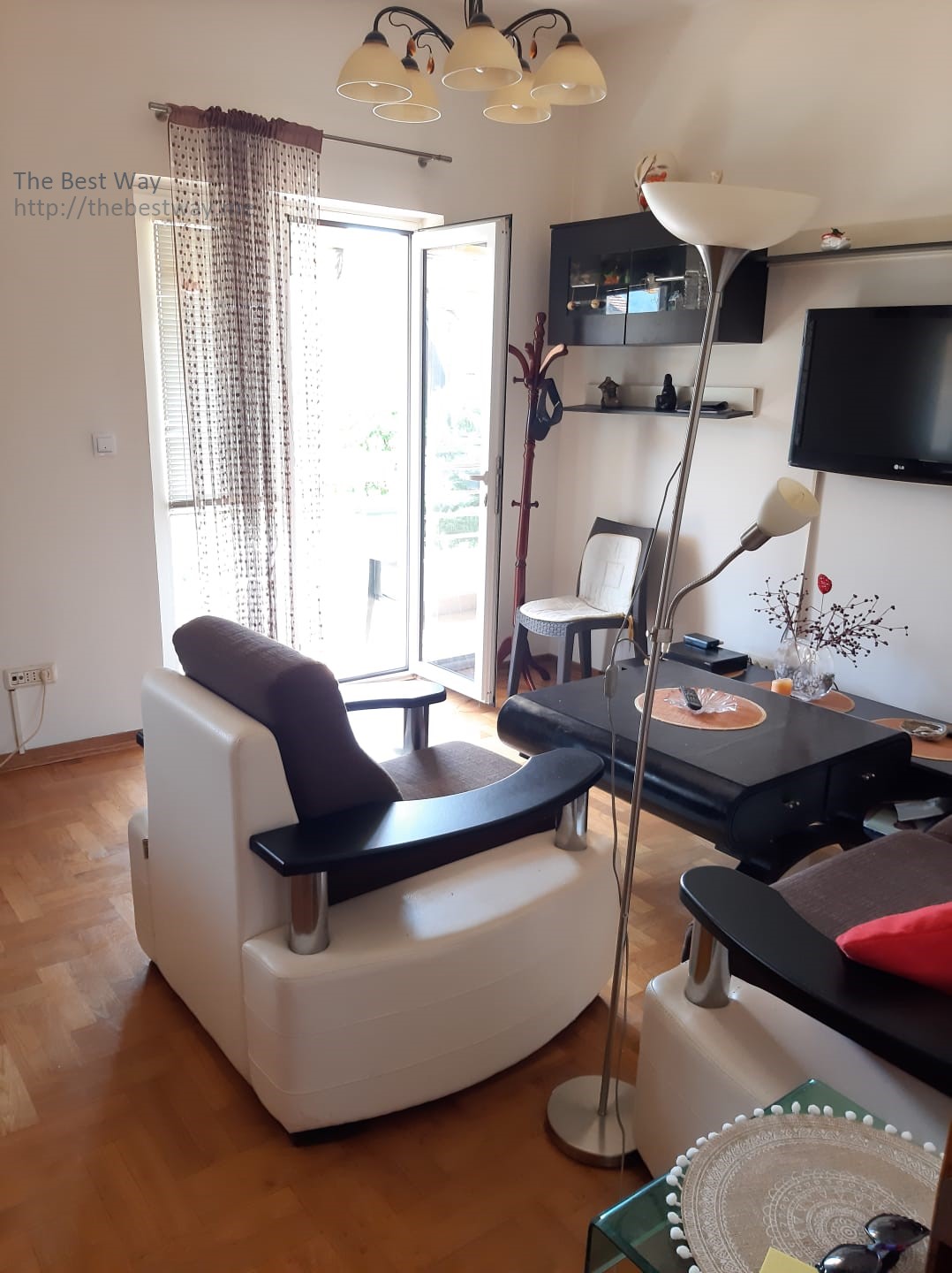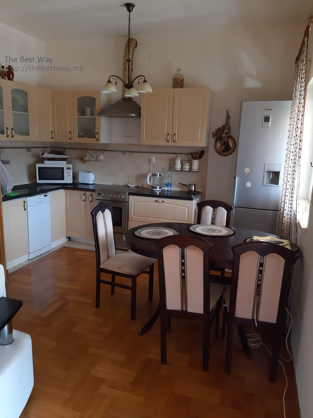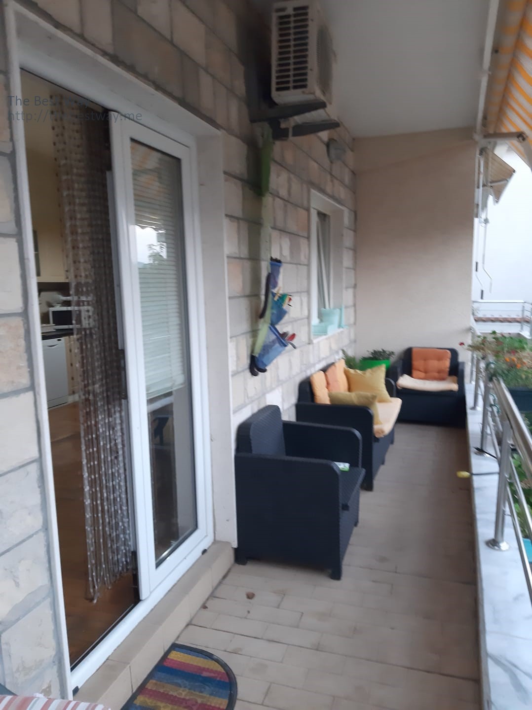 Outside there is a small garden with a grill and a swimming pool. There is a parking space assigned to the apartment. You can reach the sea along a walking path. Nearby there is a promenade, beaches, cafes and restaurants, as well as the elite complex of Porto Novi, which attracts tourists.