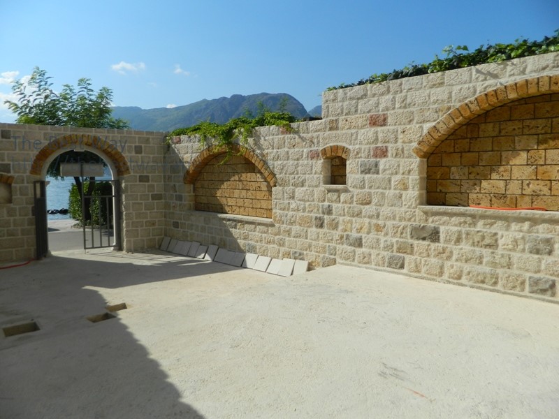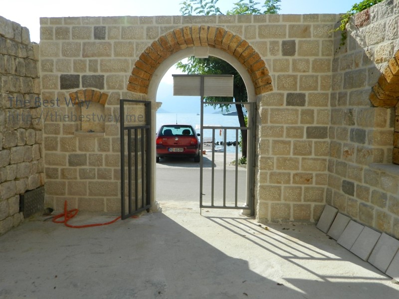 Перед виллой расположен причал и терраса 80 м2, с правом пользования. За домом расположен гараж (в процессе строительства), и выезд на Ядранский пут.