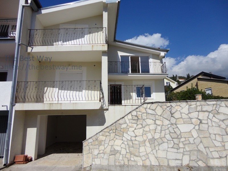 Продается новый дом в поселке Сушчепан. Расположение: Дом находится над городом Герцег-Нови. Дорога до пляжа на машине занимает 5 минут, пешком вверх 25 минут. С участка открывается отличный вид на открытое море, устье Которского залива и на горы.
