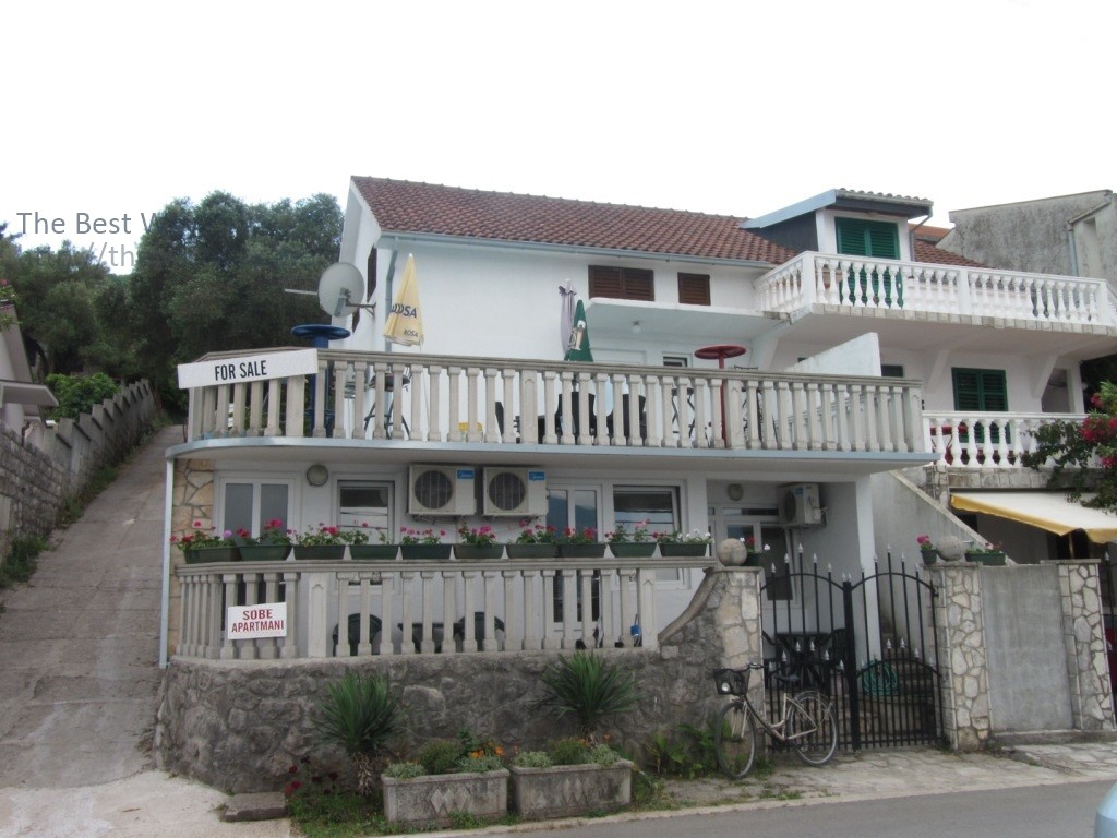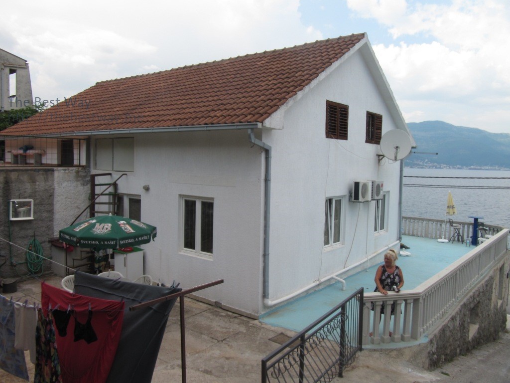 Двухэтажный дом на самом берегу моря в Крашичи, Тиватской ривьеры. Открытый вид на залив. Через дорогу небольшой спуск к морю. Рядом магазины и ресторан. Дом состоит из первого этажа, где расположены 3 апартамента с индивидуальным входом . На втором этаже расположены большая терраса и квартира, состоящая из зала, кухни, спальни и комнаты, которую также можно использовать под спальню.