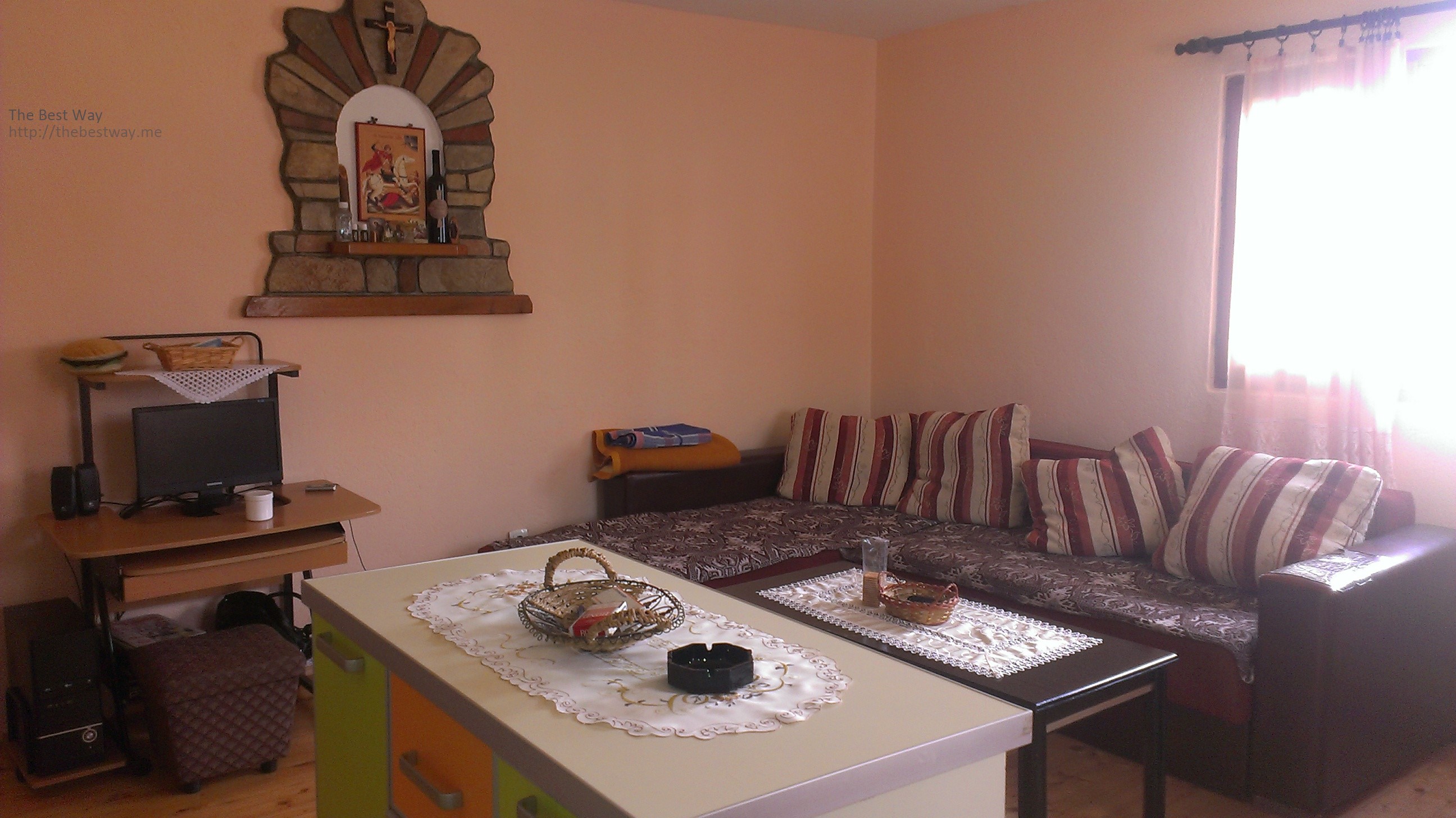Половина дома с собственным участком в районе «Ковачка долина» с видом на горный массив «Дурмитор». Хороший ремонт, качественная отделка, третий этаж не завершен. На первом этаже располагается гостиная, совмещенная с кухней, ванная комната; на втором этаже - 2 спальни. Удаленность от центра города 1000 метров.
