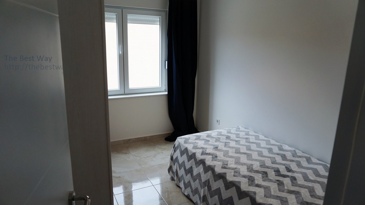Гостиная с кухней – 25 кв.м, 2 cпальные комнаты: 15 кв.м,10 кв.м. Терасса 6 кв.м. Собственное парковочное место входит в стоимость квартиры. До моря пешком 15 минут, в сезон - тихое место, не слышно музыки. Цена: 96.000 евро