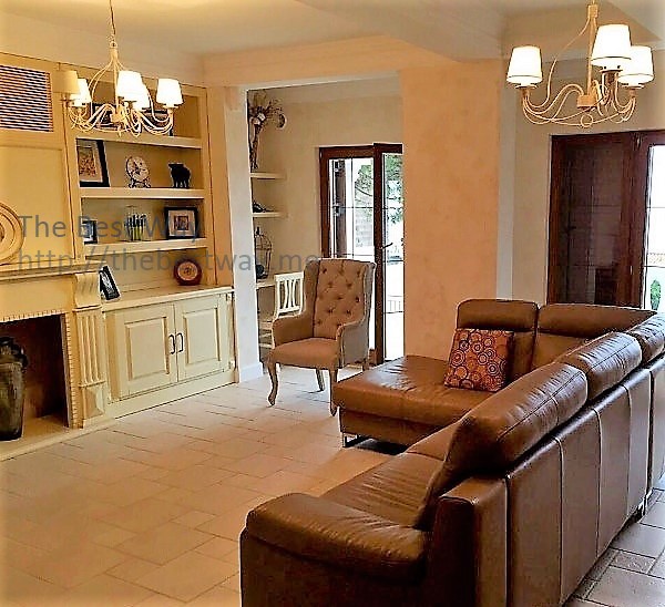 Высота потолков 3 метра. Каждая из 5 спален - с выходом на балкон, прекрасным видом на море и собственным санузлом с ванной.