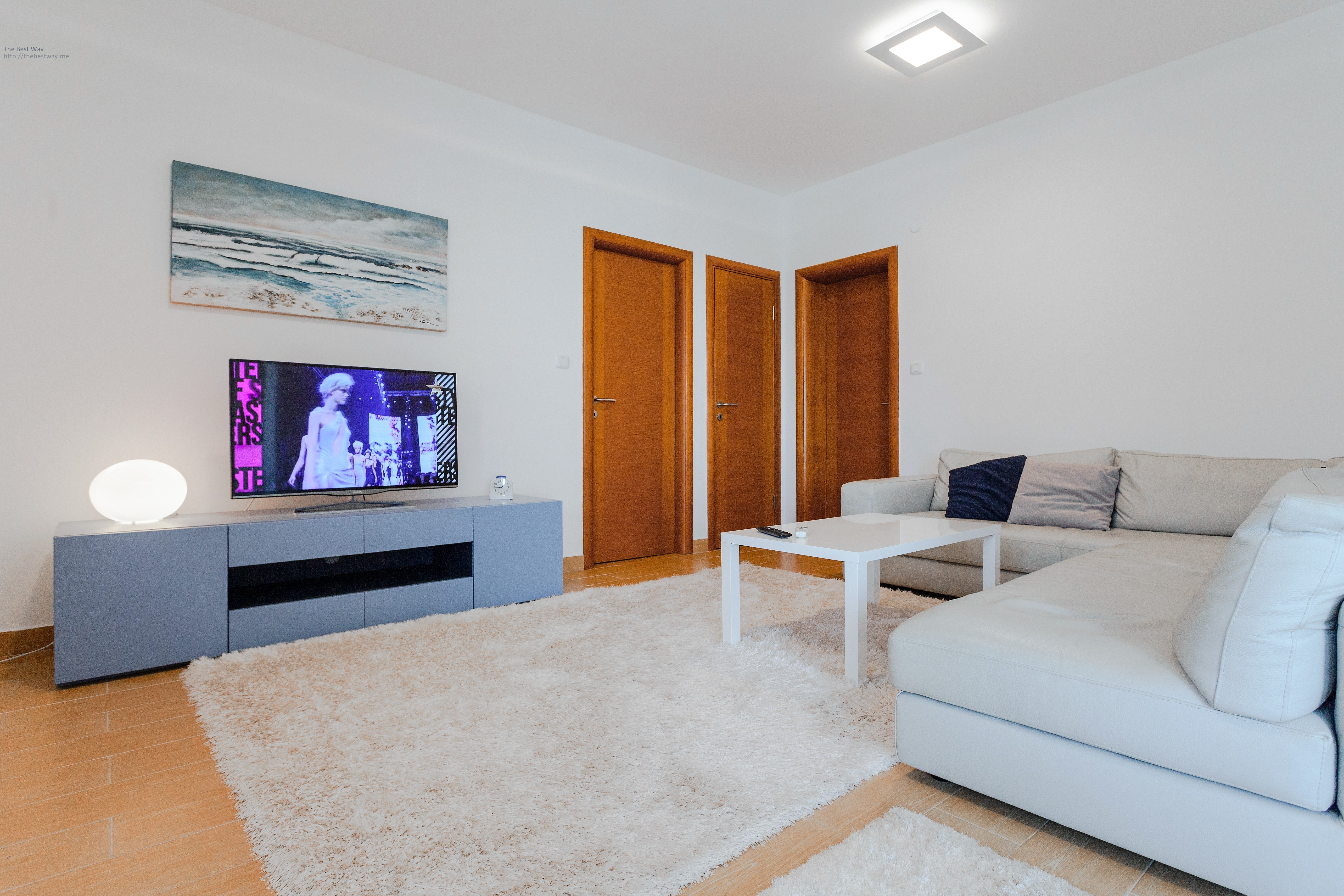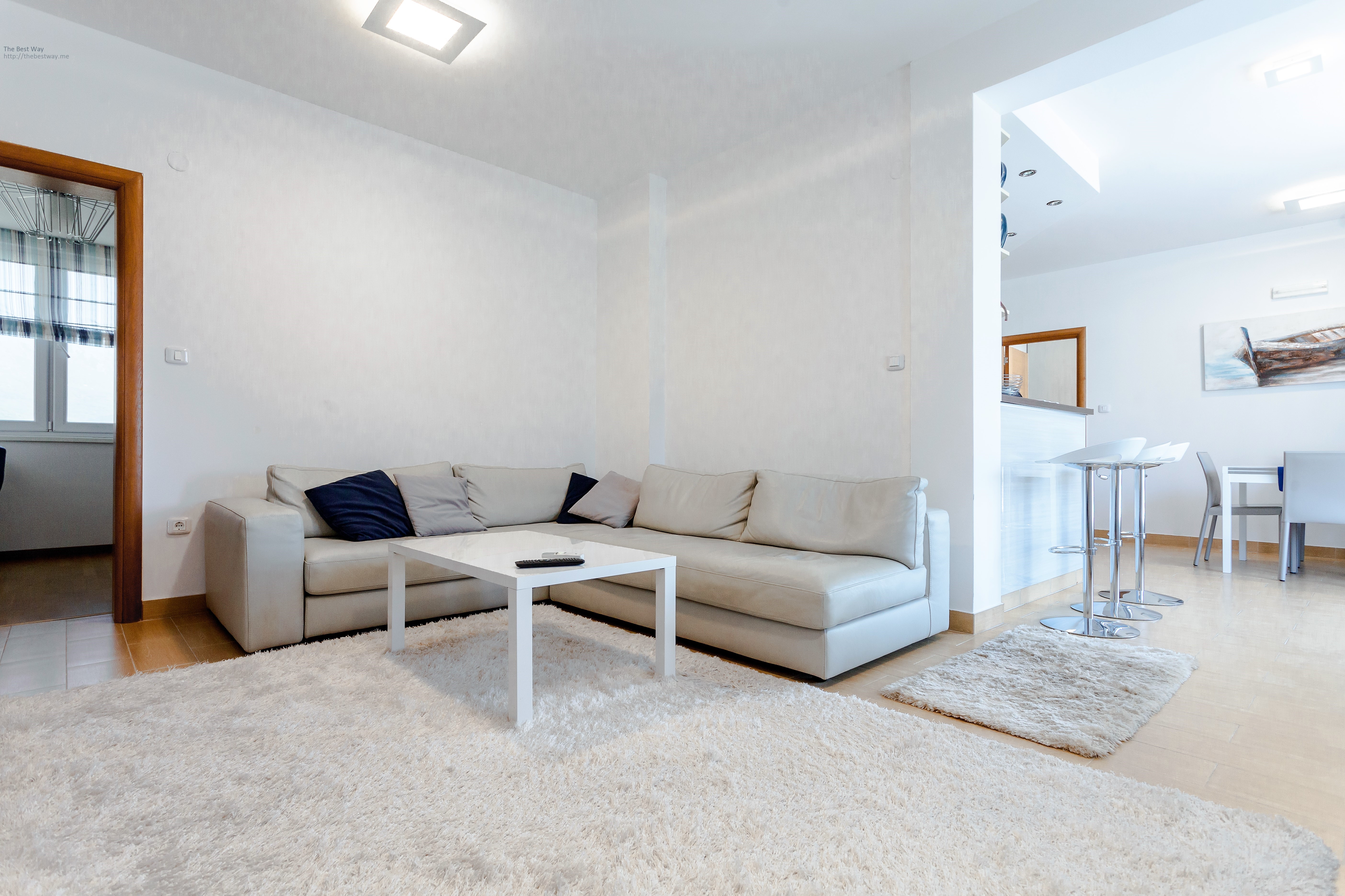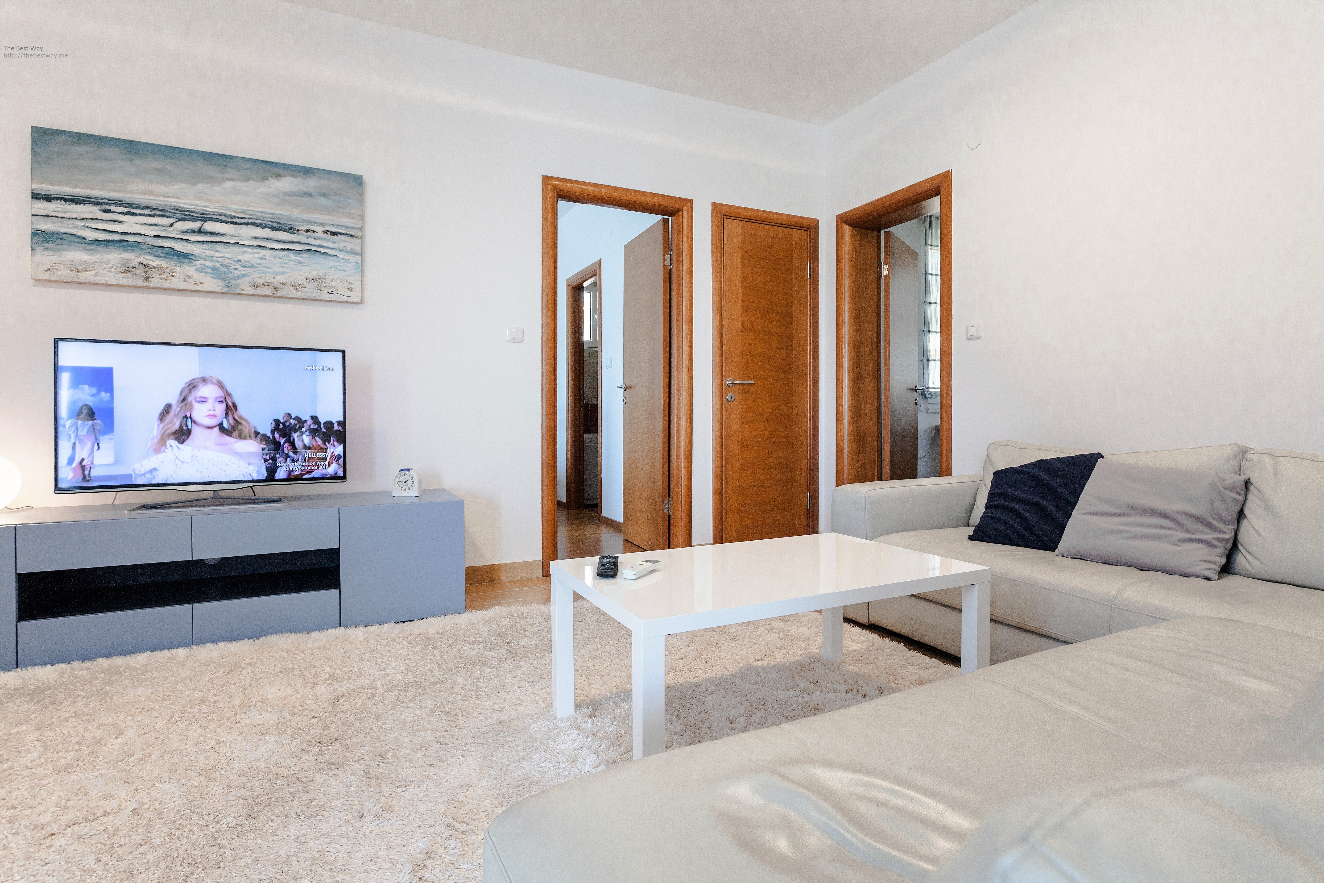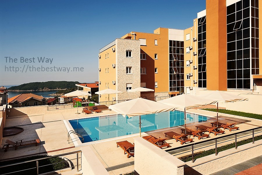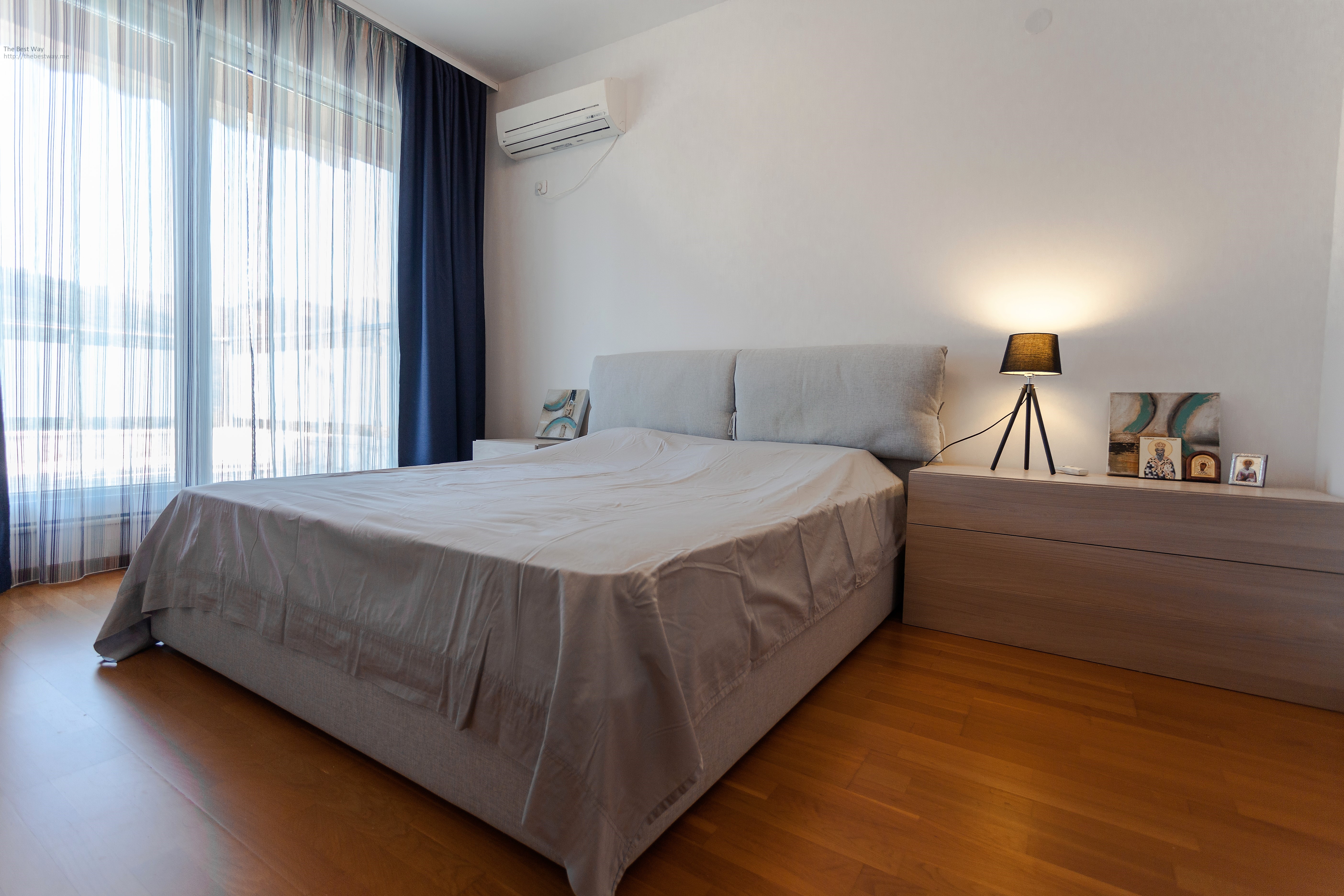 Стильный просторный пентхаус в закрытом жилом комплексе «Becici One» с видом на море с своим выходом на крышу. Две спальни, просторная терраса с видом на горы и море, остров Св. Николы.