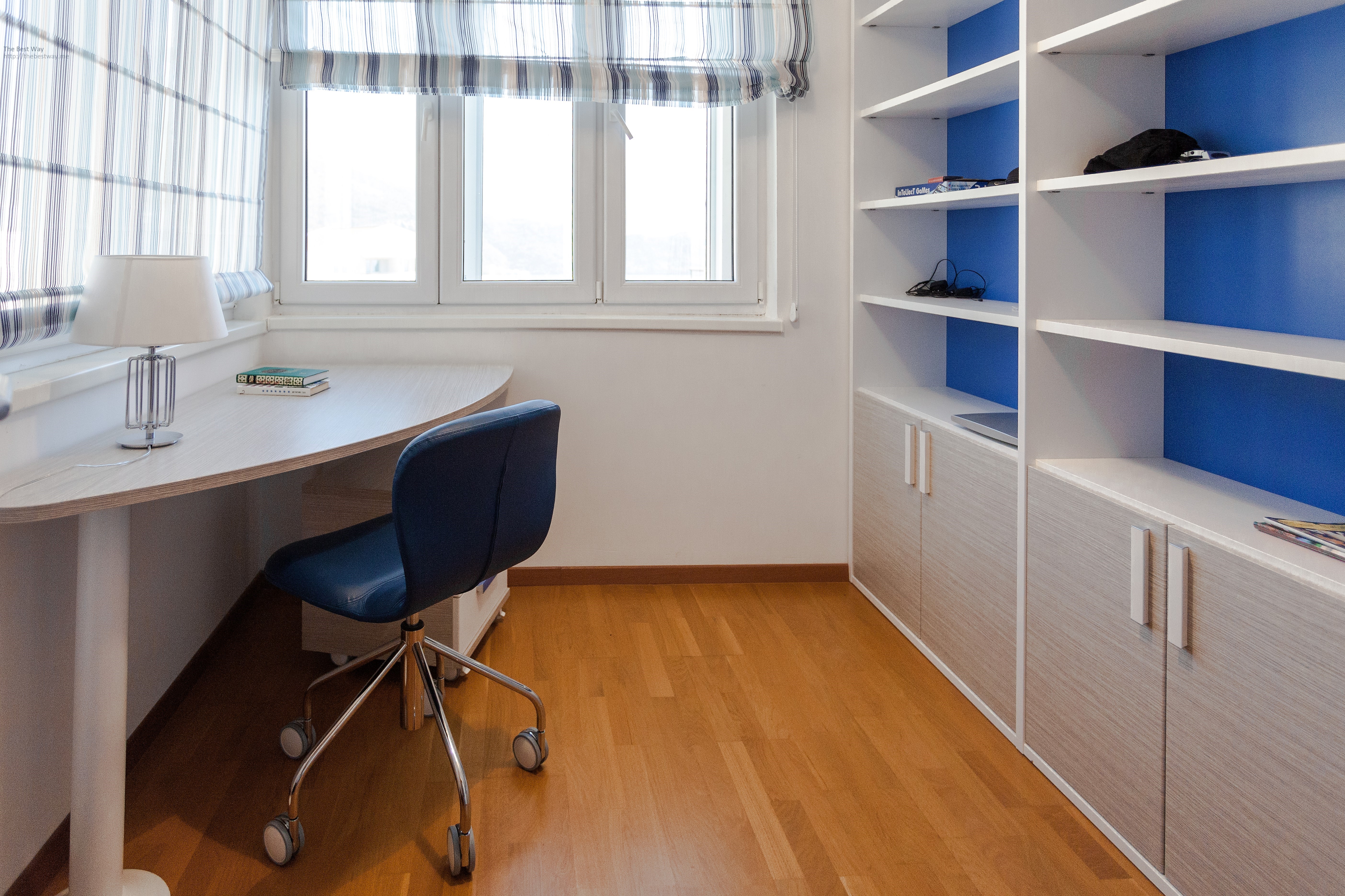 Структура квартиры: Две спальни, просторная гостиная, обеденная зона с кухней и кабинет, 2 санузла с ванной и душевой кабиной.