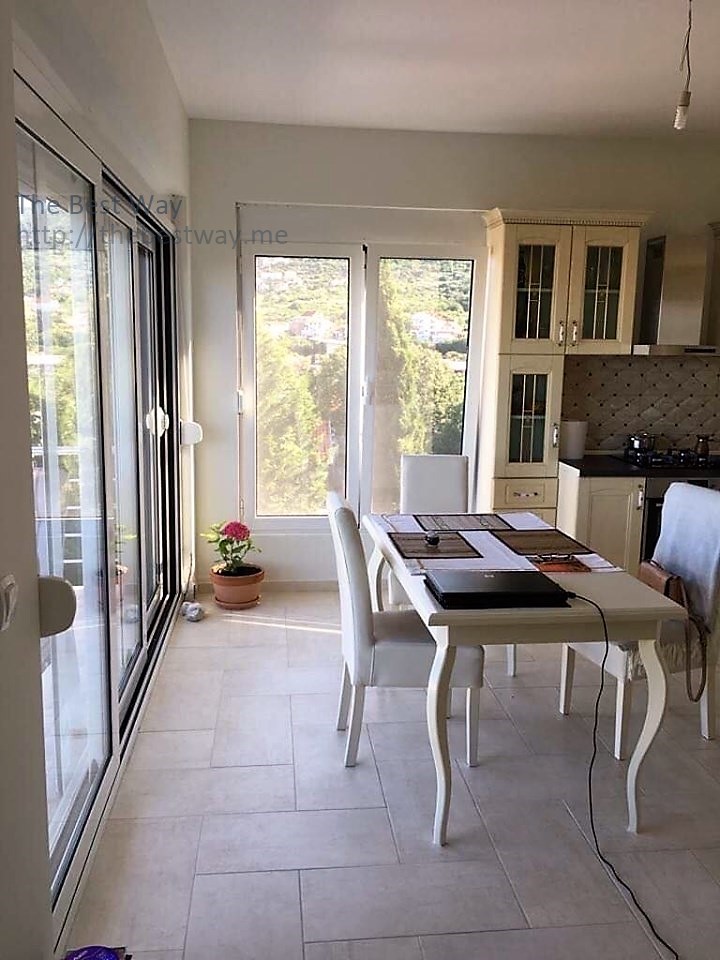 3-х этажный дом с большой террасой на крыше с видом на горы, море; 1-й этаж два апартамента по 45м (полноценные маленькие двухкомнатные квартиры):прихожая , санузел совместный , спальная комната с двухспальной кроватью , вторая комната студия мини кухня , диван , с выходом на балкон. Второй апартамент отличается от первого расположением комнат и в спальне раздельные кровати. 2-й этаж аналогичен первому 3-й этаж один большой апартамент в два раза превышающий по площади предыдущих апартаментов : две спальни , одна из них с панорамными стёклами с видом на море и балкон, большая кухня так же с видом на море , санузел . Крыша - большая терраса с видом на горы и море.
