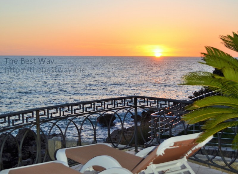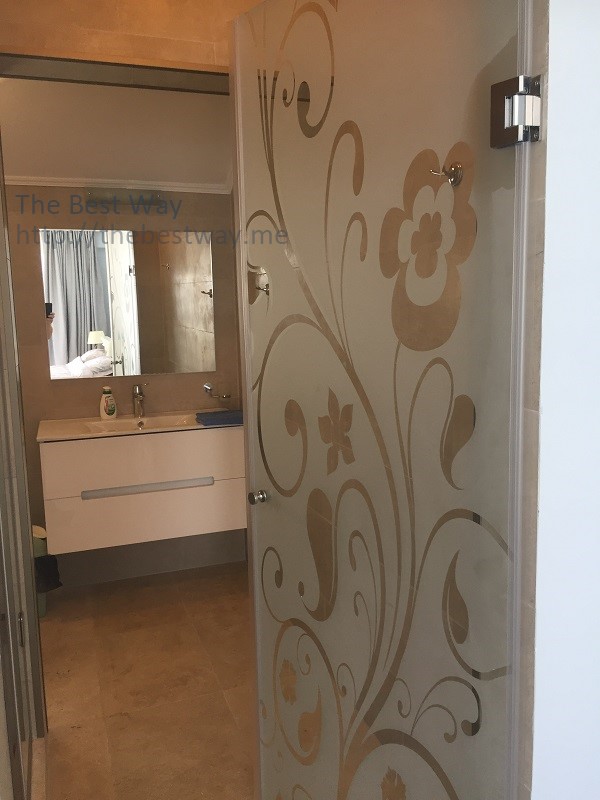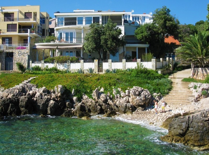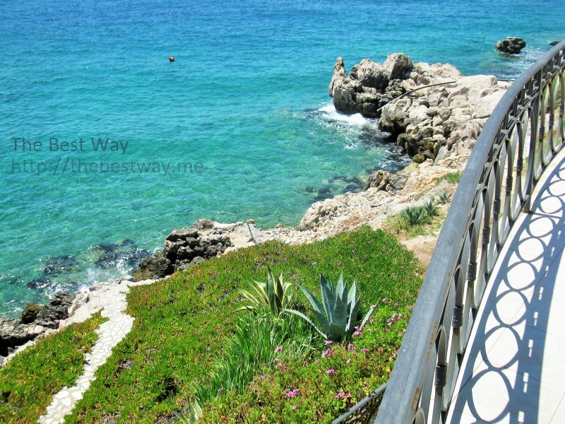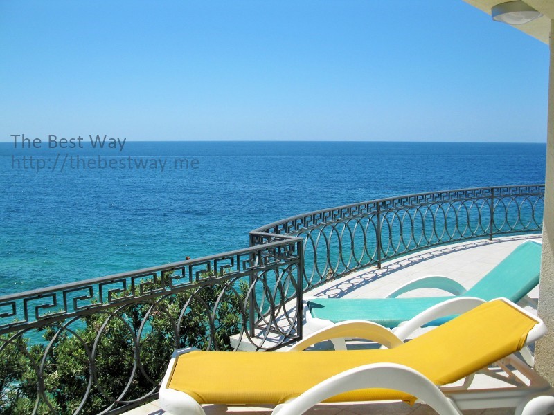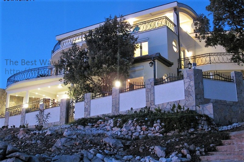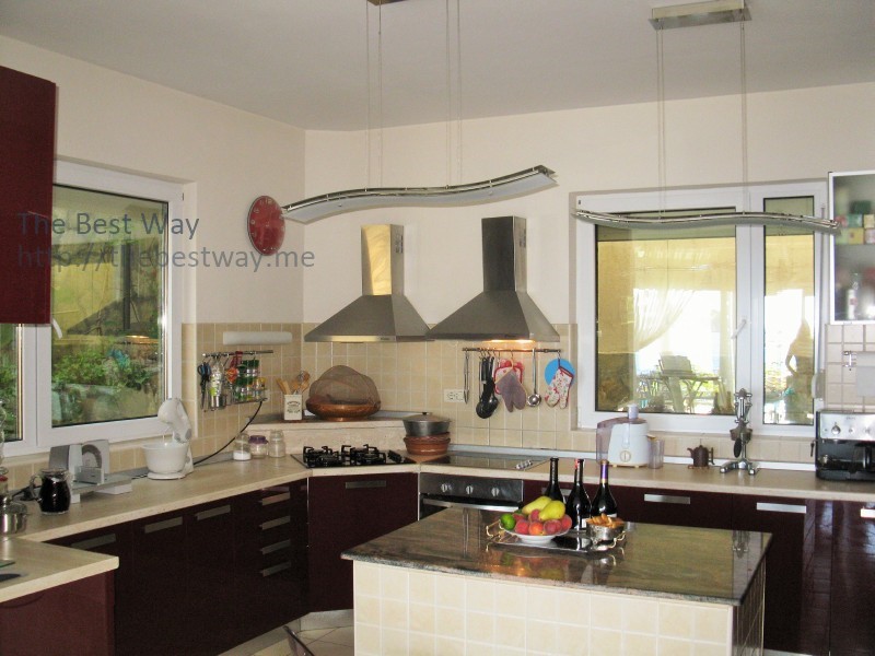 На самом берегу Адриатического моря в местечке Утеха в 8 км. от г. Бар построена вилла общей площадью 497 м2. Край террасы первого этажа находится в 10 метрах от воды и в 25 метрах от небольшого галечного пляжа, к которому ведет удобный спуск. Территория обнесена высокой каменной оградой с кованым обрамлением, что создает ощущение приватности и уюта в маленьком садике. Вилла состоит из двух частей - основного хозяйского здания, и части для работников (или гостей) с отдельным входом, где располагается однокомнатный апартамент со своей кухней, душевой, балконом и благоустроенной мансардой. Вход в большой дом начинается с широкой каменной лестницы, ведущей на крыльцо, обрамленное колоннами. Массивная двустворчатая входная дверь отделана деревом по металлической основе