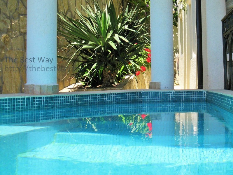 Третий этаж. Пройдя по той же лестнице наверх Вы попадаете в просторный зал. Здесь стоит 12 футовый бильярдный стол для игры в снукер. Он привезен из Германии по специальному заказу и смонтирован мастером с учетом всех тонкостей этой аристократической игры. Сбоку находится столик с зеленым сукном для карточных игр или пасьянса. Огромное помещение – практически оранжерея под полукруглой крышей, с колоннами, отделанными серым мрамором. Стеклянные двери ведут на открытую, под солнцем и звездами, террасу третьего этажа.