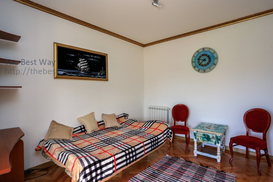 -цокольный этаж=кухня, столовая, сан.узел -первый этаж: спальня, гостиная, кабинет, сан. узел -второй этаж: 3 комнаты с 2 сан. узлами -пристрой: гарсоньера