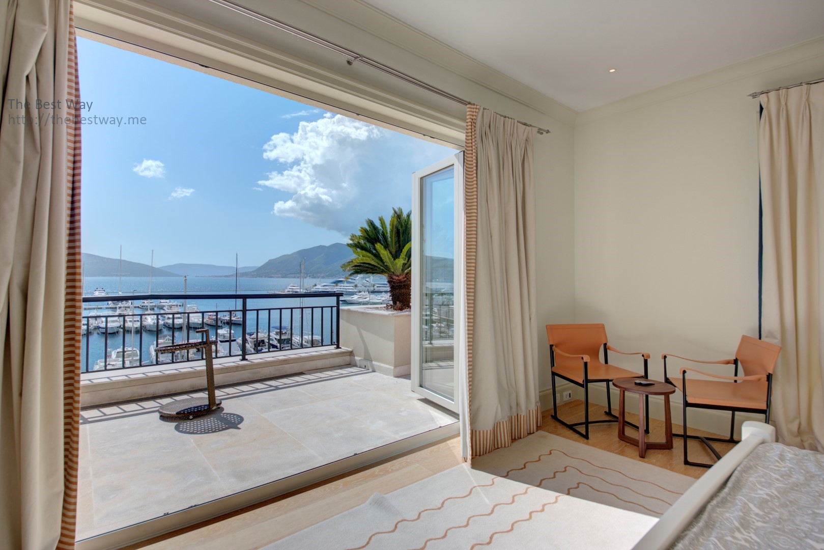 Двухуровневые апартаменты в комплексе Порто - Монтенегро, на 3 и 4 этажах, с уникальным расположением в комплексе, потрясающим видом на море и отличной организацией пространства. · Нижний этаж состоит из гостиной с кухней и столовой, гостевого туалета и большой террасы с открытым видом на море. · На верхнем этаже расположены две спальни, три ванные комнаты, кабинет и еще одна большая терраса с захватывающим видом на Jetty One, Venice Square и и с видом на море до входа в бухту. Квартира полностью и красиво меблирована. В стоимость квартиры входит подземный гараж. Владельцы квартир в здании имеют в своем распоряжении общий бассейн, тренажерный зал и сауну.