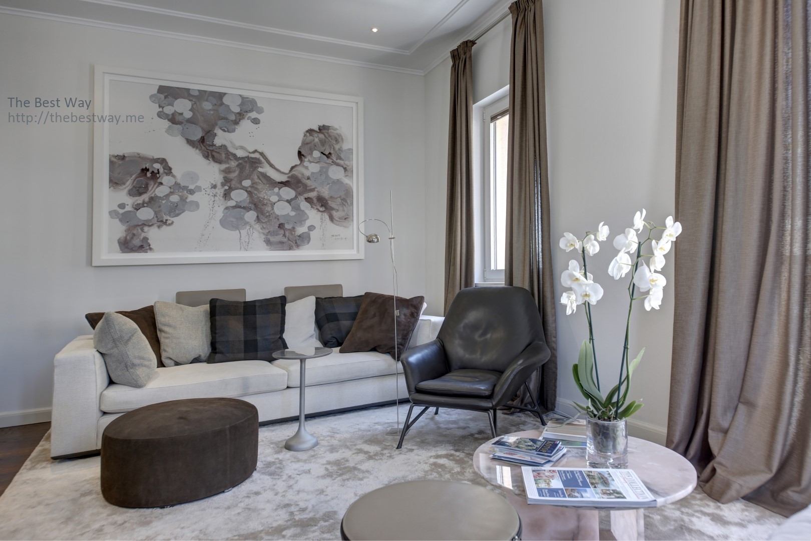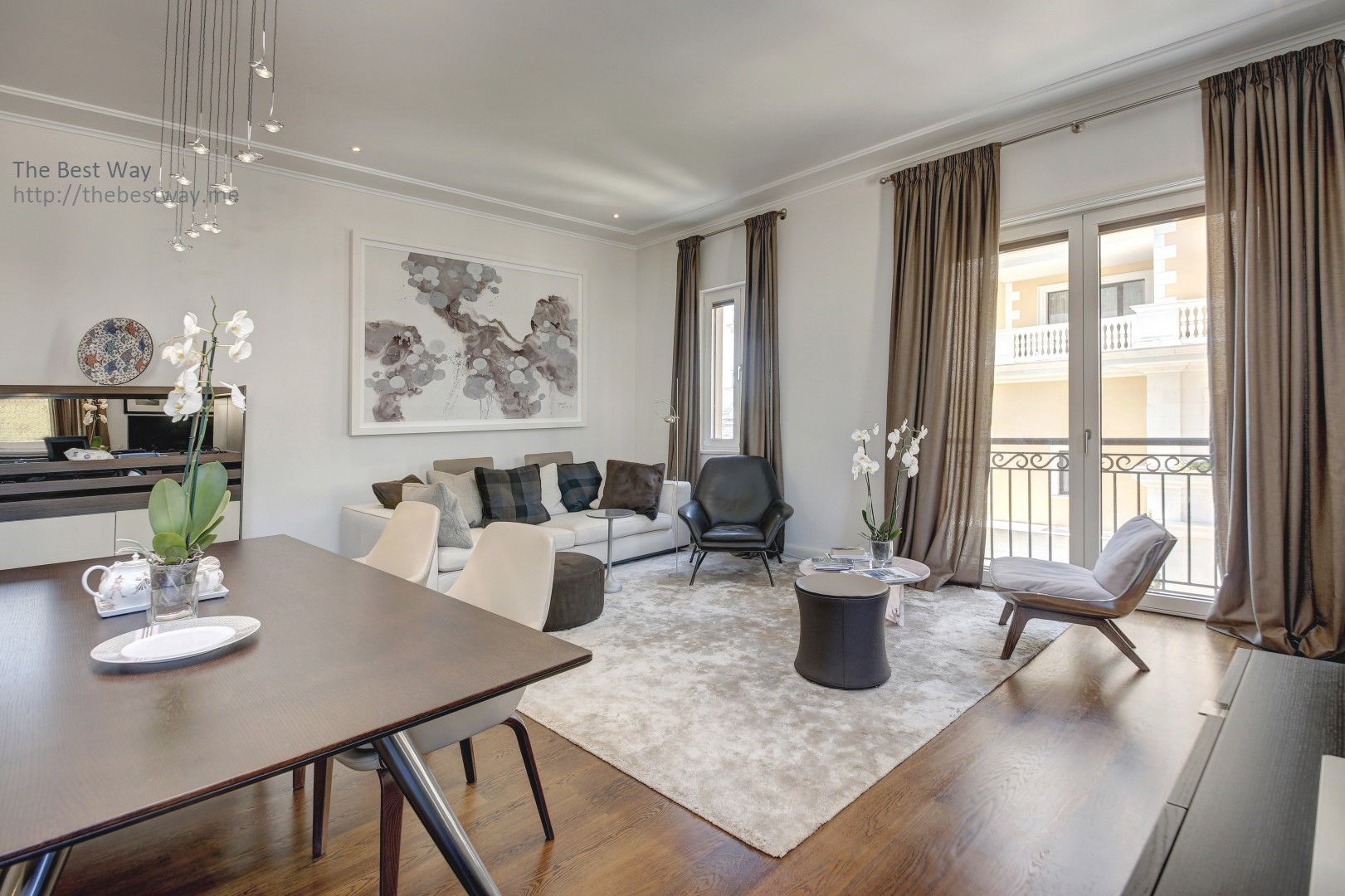 Меблированная трехкомнатная квартираэ Квартира находится на 2 этаже, с видом на набережную, на море. Онa состоит из двух спален, большой гостиной, столовой, кухни, прихожей, двух ванных комнат, гостевого туалета и террасы.