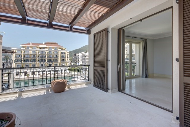 Тиват, Порто Монтенегро - трехкомнатная квартира с видом на море; Красивая трехкомнатная квартира площадью 128м2, с парковочным местом в подземном гараже, в комплексе Порто Монтенегро, с открытым видом на море. Квартира используется редко. Квартира состоит из 2 спален с ванными комнатами, одного туалета, большой гостиной со столовой, кухни и большой террасы. Из апартаментов открывается вид на открытое море, пристань для яхт. Есть oчень уютный и очень красивый бассейн, предназначенный только для владельцев квартир, постоянно доступная стойка регистрации, а также магазины и рестораны на первом этаже. Открытые, просторные интерьеры имеют высоки потолки, большие окна и экспансивные террасы, а архитектура отражает исторические влияния Венецианской республики. Всемирно известный дизайнер Тино Zervudachi запланировал каждую квартиру в Порто Монтенегро. Все номера оформлены с палитрой мягких тонах, дополненных смесью камня и дерева.