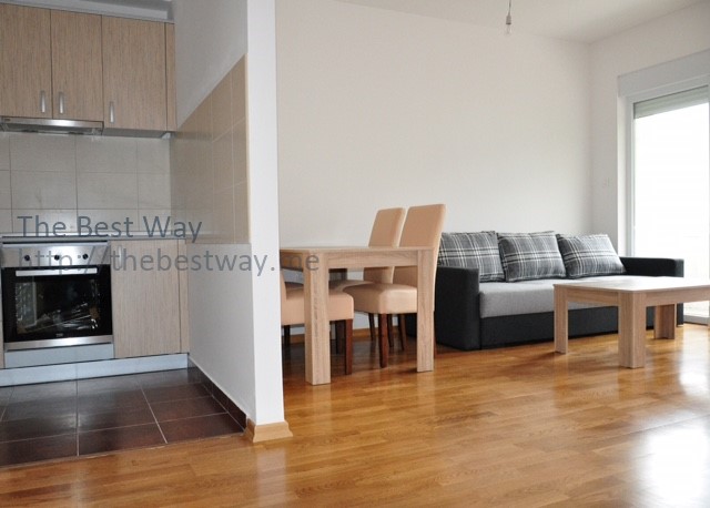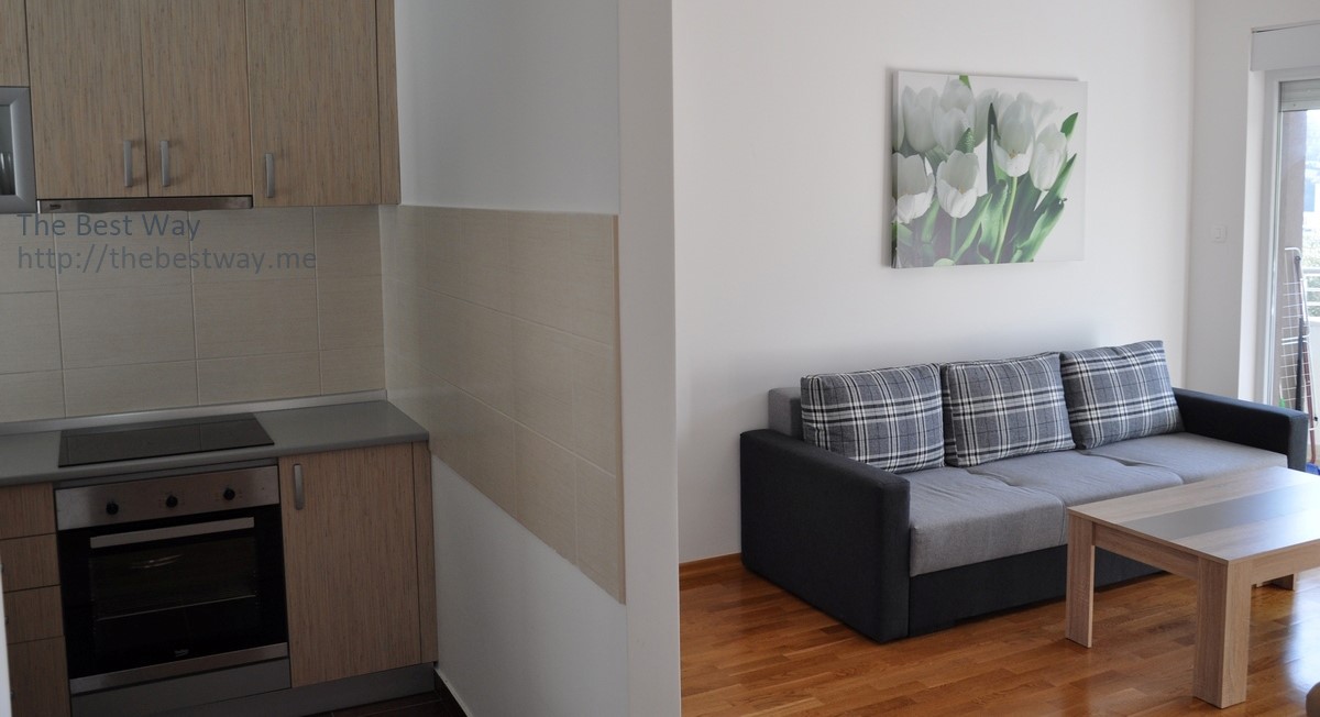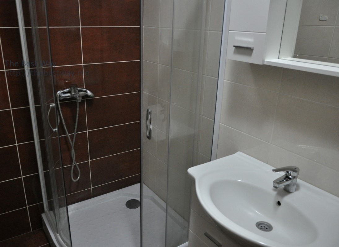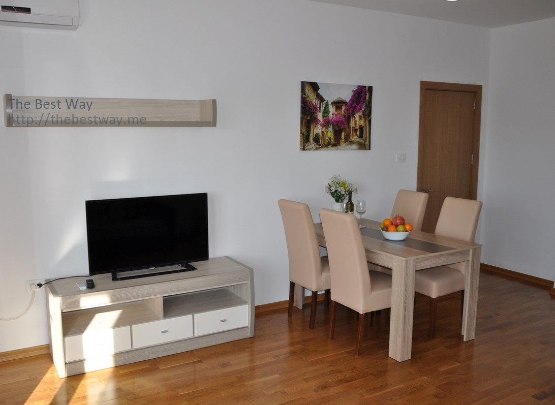 В предместье Будвы продаётся просторная трёхкомнатная квартира об-щей площадью 62 м2. Находится на первом (высоком) этаже нового дома в тихом зеленом районе Бечичи на улице Sresmkog fronta. Дом расположен недалеко от отеля «Сплендид» в 10 минутах ходьбы до знаменитого Бечинского пляжа. Квартира включает в себя: прихожую; гостиную с кухонной зоной и террасой; две отдельные спальни с балконом; одна большая ванная комната, один санузел. Отделка квартиры : полы в гостиной и спальнях – паркетная дос-ка, в кухонной зоне и санузлах – плит-ка, алюминиевые стеклопакеты со светозащитными роллетами на окнах, кондиционер, душевая кабина и сантехника. Квартира светлая, с удобной планировкой, оснащена всей необходимой мебелью и бытовой техникой и готова к проживанию, либо к сдаче в аренду. Гостиная оборудована комодом под ТВ, телевизором, мягкой мебелью, журнальным столиком, обеденной группой, кондиционером; в ванной комнате имеется электрический водонагреватель, вся необходимая сантехника, душевая кабина, шкафчик с зеркалом, стиральная машина; во втором санузле – унитаз и умывальник; в кухонной зоне располагается встроенная кухня с посудой и бытовой техникой (плита, холодильник, духовка, вытяжка, чайник); в спальнях – двуспальная кровать и диван, прикроватные тумбочки и шкаф-купе; прихожая оснащена шкафом для обуви и верхней одежды. Отопление: Кондиционер