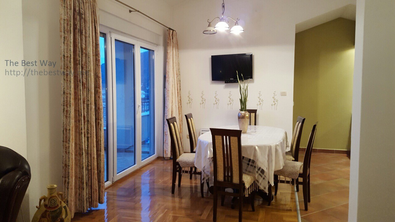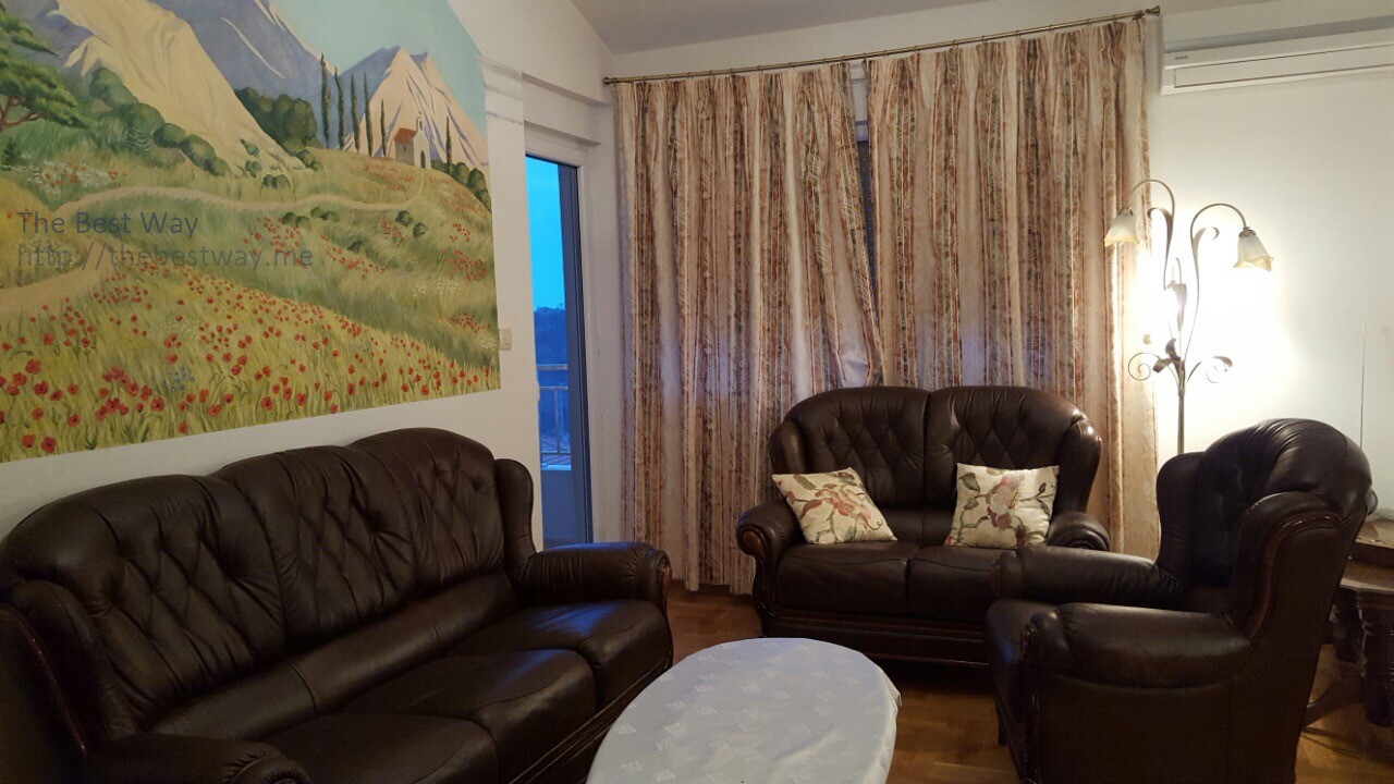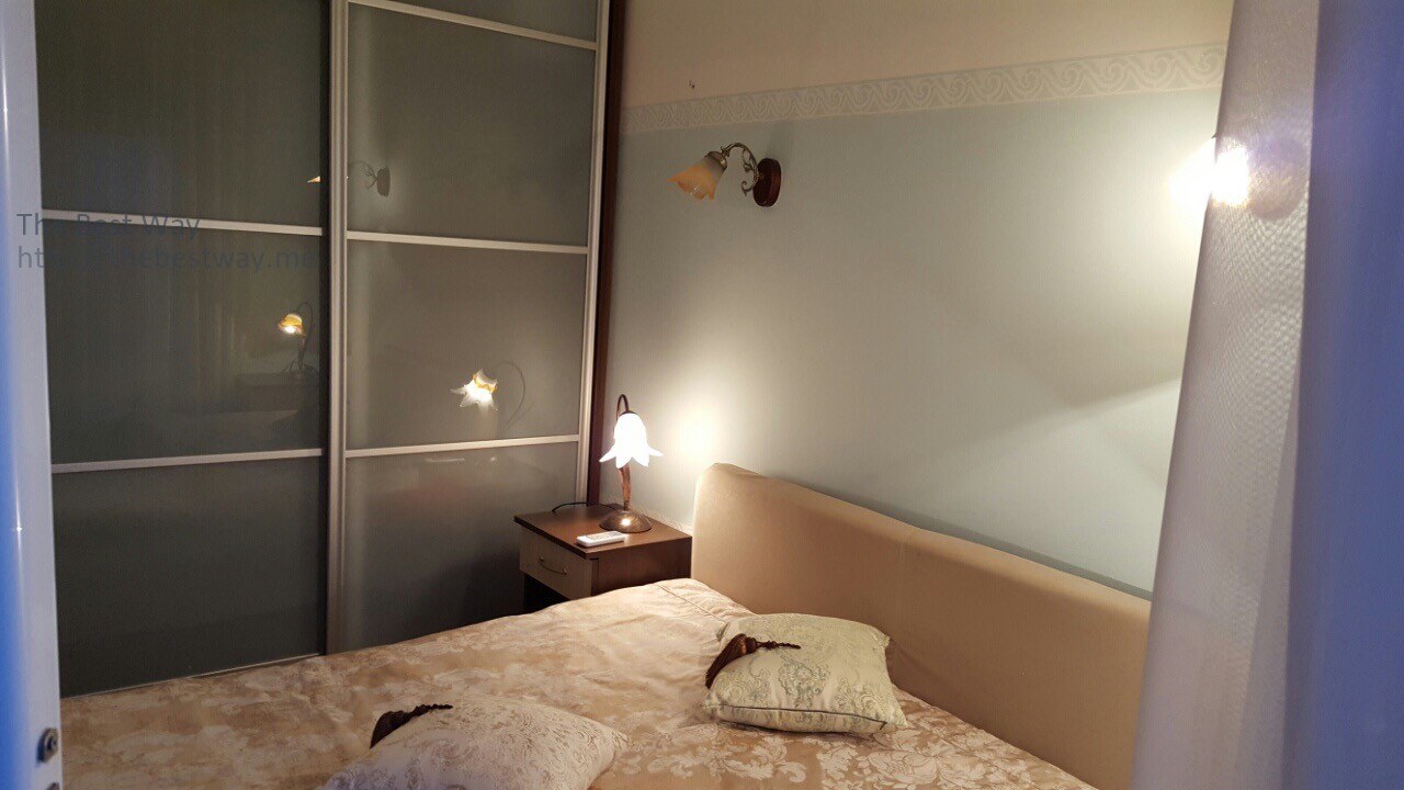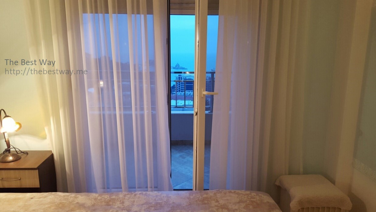 Квартира 109 м2 + 20 м2 террасой с 2 спальнями в Петровце на ul. Mainici с великолепным панорамным видом на море, город, горы и оливковую рощу( задние окна), со своим паркингом на территории вокруг дома за шлагбаумом, в 600 м от моря и городского пляжа (последние 150 м в горку, без лестниц). 5 этаж. Лифт.